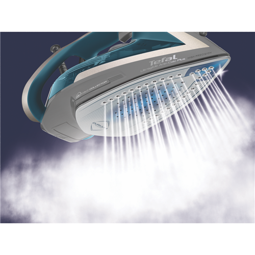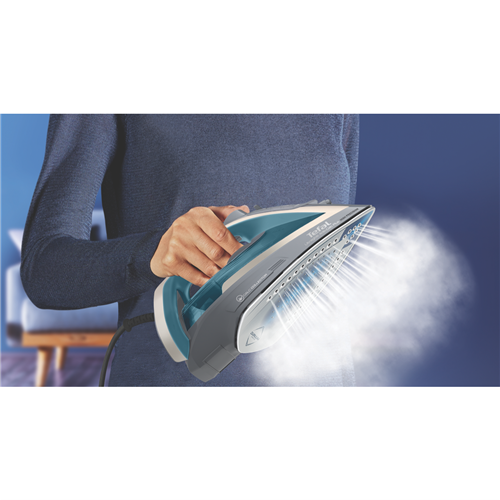 Create a stir in the kitchen with the sleek Tefal UltraGlide Plus Steam Iron. This powerful 2400 watt iron comes equipped with a durable Durilium Airglide soleplate that effortlessly glides over all fabrics. The 270ml water tank allows you to iron for longer between refills while the vertical steam function lets you freshen up curtains or hanging clothes. With a steam output of 45g/min and a steam shot of 165g/min wrinkles don't stand a chance. The integrated anti-calc system prevents scale buildup ensuring peak performance for longer. Auto shut-off provides added safety and peace of mind. Available in a stylish Javva Pepper and Boreal Blue this lightweight 1.59kg iron makes quick work of the laundry pile. Additional features like the anti-drip system spray mist button and manual temperature settings ensure crisp professional results on all your garments. Backed by a 2 year warranty this energy efficient iron with a 2 meter cord will be your go-to for taming wrinkles for years to come. Give your laundry an upgrade with the exceptional performance of the Tefal UltraGlide Plus Steam Iron. The manufacturer's part number for this product is FV5844.