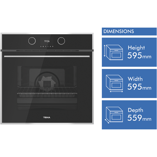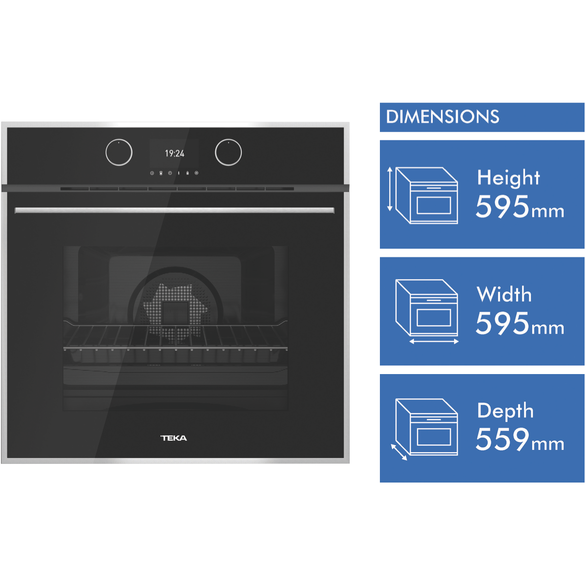 This Teka 60cm Pyrolytic Oven HLB 840 P is an electric powered oven with eight functions including 'Eco mode' 'Pizza' 'Defrost' and 80 litres of usable oven capacity. Featuring Teka Hydroclean an innovative technology that uses steam to loosen grease and grime to ensure that with just a glass of water you can easily clean your oven in under half an hour. This oven also offers pyrolytic cleaning utilising temperatures of up to 500 degrees to turn all food residue to ash so it can easily be wiped away with a damp cloth after the oven has cooled. This Teka oven has a fingerprint proof stainless steel finish helping to keep your appliance mark-free while the soft-close quad glazed glass door and a child safety lock provides extra protection for little hands and paws.