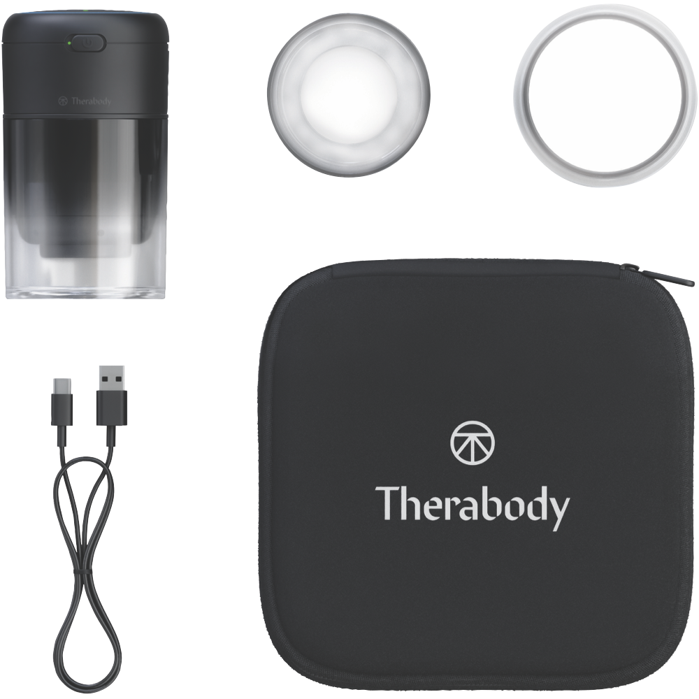 Immerse yourself in therapeutic relief with the Therabody TheraCup. This innovative massager utilizes ThermaVibration technology to ease tension and soothe sore muscles. Choose from three intensity levels of targeted vibration therapy and heat treatment up to 45°C. Decompress tight areas using the suction mode's three intensity settings up to 50kPa. With three transparent interchangeable massage cups customize your relief experience. The 35mm 45mm and 55mm cup sizes allow you to target specific areas from large muscle groups to joints. Thoughtfully designed for portability the battery-powered TheraCup delivers professional-grade treatment in a compact lightweight unit. Experience the difference targeted percussion heat and suction therapy can make with the Therabody TheraCup massager. Therabody MPN: TB03285-01.