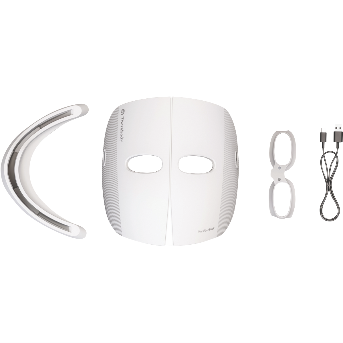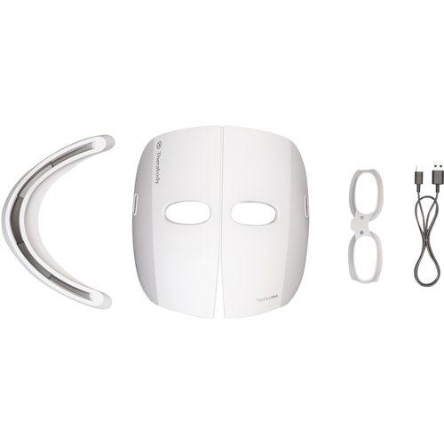 Treat your skin to a spa-like experience at home with the Therabody Theraface LED Mask. This innovative beauty mask combines LED light therapy and percussive massage to address a range of skin concerns. Red light helps reduce fine lines and wrinkles while blue light targets acne-causing bacteria. You can also enjoy the benefits of red plus infrared light to improve radiance and even out skin tone. The cleansing ring attachment removes build-up leaving your skin feeling refreshed. Plus the 17 QX-Micro Motors deliver soothing vibrations to key pressure points on your face and scalp helping you relax and de-stress. The percussive therapy attachments work to relieve tension in your face jaw neck and head. It's all powered by a convenient USB-A+C to USB-C cable and comes with a display stand for easy storage. Give your complexion the TLC it deserves with the Therabody Theraface LED Mask (TF03991-01) backed by a 1-year manufacturer's warranty.