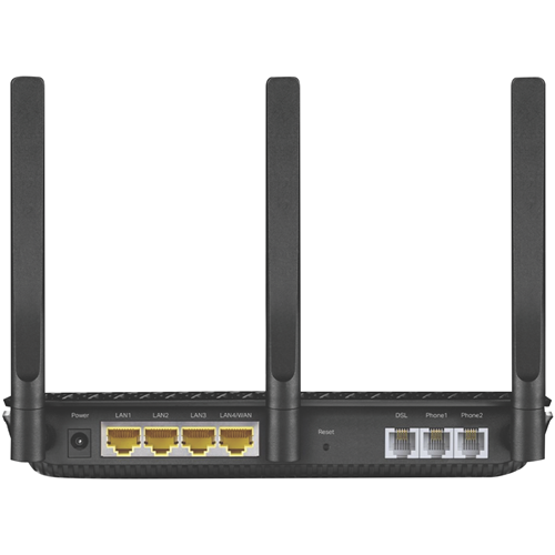 Connections 1%26#215; Gigabit RJ45 WAN/LAN Port, 3%26#215; Gigabit RJ45 LAN Ports, 3%26#215; RJ11 Ports (DSL, Phone1/2), 1%26#215; USB 3.0 Port