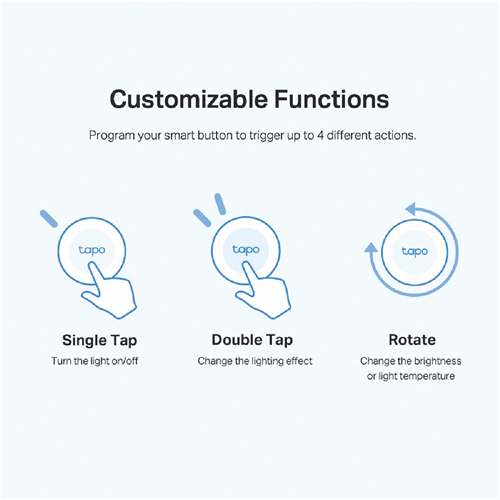 Take control of your smart home with the TP-LINK Smart Button. This innovative white button lets you automate routines and control compatible smart devices with the simple tap of a finger. Mount it anywhere for convenient wireless operation via the Tapo app on iOS 10+ or Android 5.0+. With the Smart Button you can set personalized scenes like movie night to dim lights and start your home theater with one tap. Or use it to toggle lights on and off as you move through your home. The compact CR2032 battery-powered design allows flexible placement around the house. Setup is easy; just pair with your Tapo hub and mount using the included tape and template. Start building customized smart home automations with this versatile Smart Button. The manufacturer's part number for this product is TAPO-S200B. Take control of your smart home now with the TP-LINK Smart Button.
