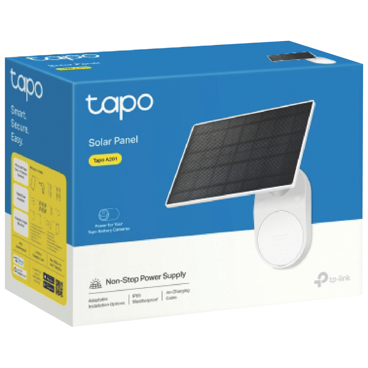 Harness the power of the sun to keep your Tapo security camera charged and ready to go. This handy solar panel is designed to work seamlessly with your Tapo camera giving you one less thing to worry about. The adjustable mounting bracket and included hardware make it a breeze to set up while the IP65 water resistance means it can handle whatever Mother Nature throws at it. Plus with a 1-year warranty you can count on the Tapo A201 solar panel to keep your camera powered up and your home secure.