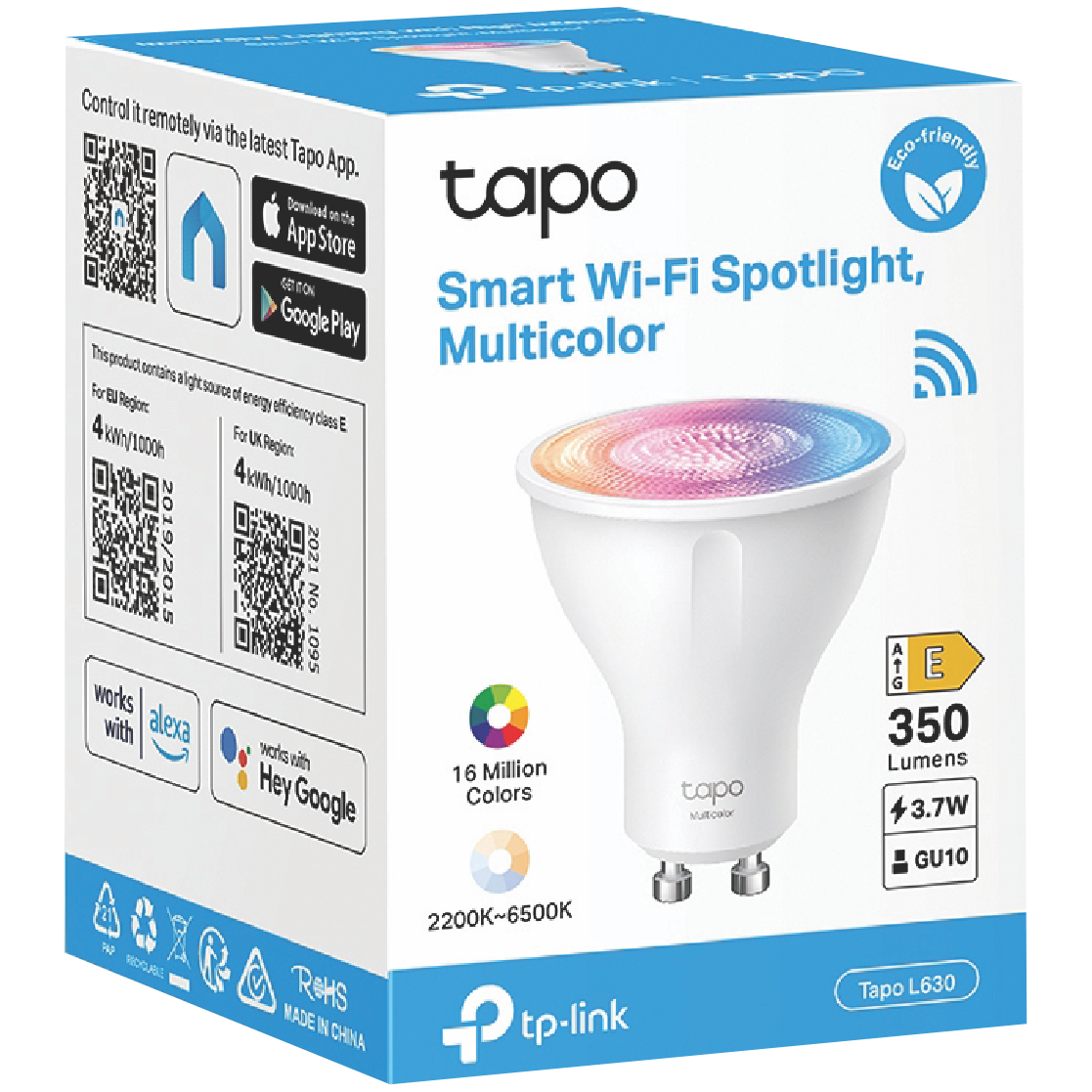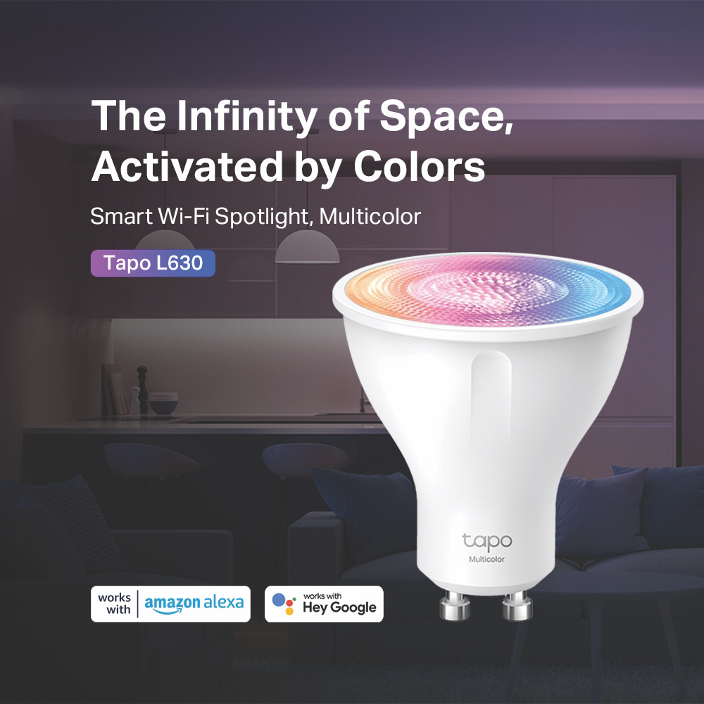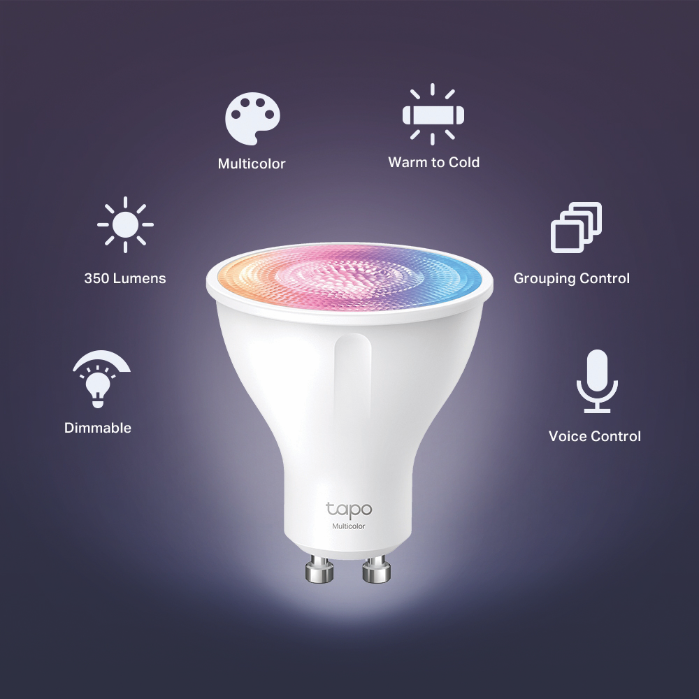 Add a splash of color to any room with the TP-LINK Tapo GU10 Colour Smart Downlight. This intelligent lighting solution packs 16 million vibrant hues into a compact 55mm frame letting you set the perfect ambiance for any occasion. With 350 lumens of brightness it shines brightly to illuminate your living spaces. Control it remotely through the Tapo app or by using your voice with Amazon Alexa or Google Assistant. Create custom lighting schedules to simulate occupancy when you're away. This Wi-Fi-enabled downlight is easy to install and pairs seamlessly with other Tapo smart home devices. The long 15000 hour lifetime means you'll enjoy stunning colors for years. Transform the look and feel of your home with the convenience of smart lighting. The manufacturer's part number for this product is TAPO-L630. Experience the difference intelligent lighting can make in your life today.