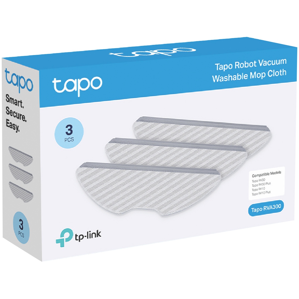 Slip the washable mop cloth onto your TP-LINK Tapo robot vacuum and enjoy spotless floors effortlessly. This handy attachment is specially designed for RV30 Plus RV30 RV10 Plus and RV10 robot vacuums enabling thorough cleaning in hard to reach areas. Simply attach the microfiber pad to swiftly pick up dust and dirt from tile hardwood laminate or vinyl. Through wet mopping eliminate up to 99% of bacteria for sanitized surfaces. With the ultra slim profile reach under furniture to access every corner. Experience comprehensive cleaning without lifting a finger. This convenient add-on takes robot vacuuming to the next level for sparkling floors throughout your home. Give those high traffic areas edges and corners the TLC they deserve. Achieve a deeper clean in the kitchen and bathroom by pairing vacuum suction with damp mopping. This vacuum attachment comes with a 1 year warranty for peace of mind. The manufacturer's part number for this product is TAPO-RVA300. Transform your floors with this robot vacuum mop cloth attachment today.