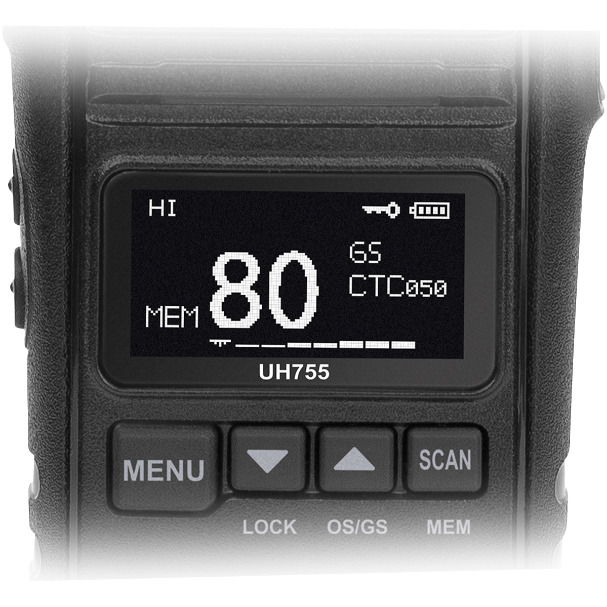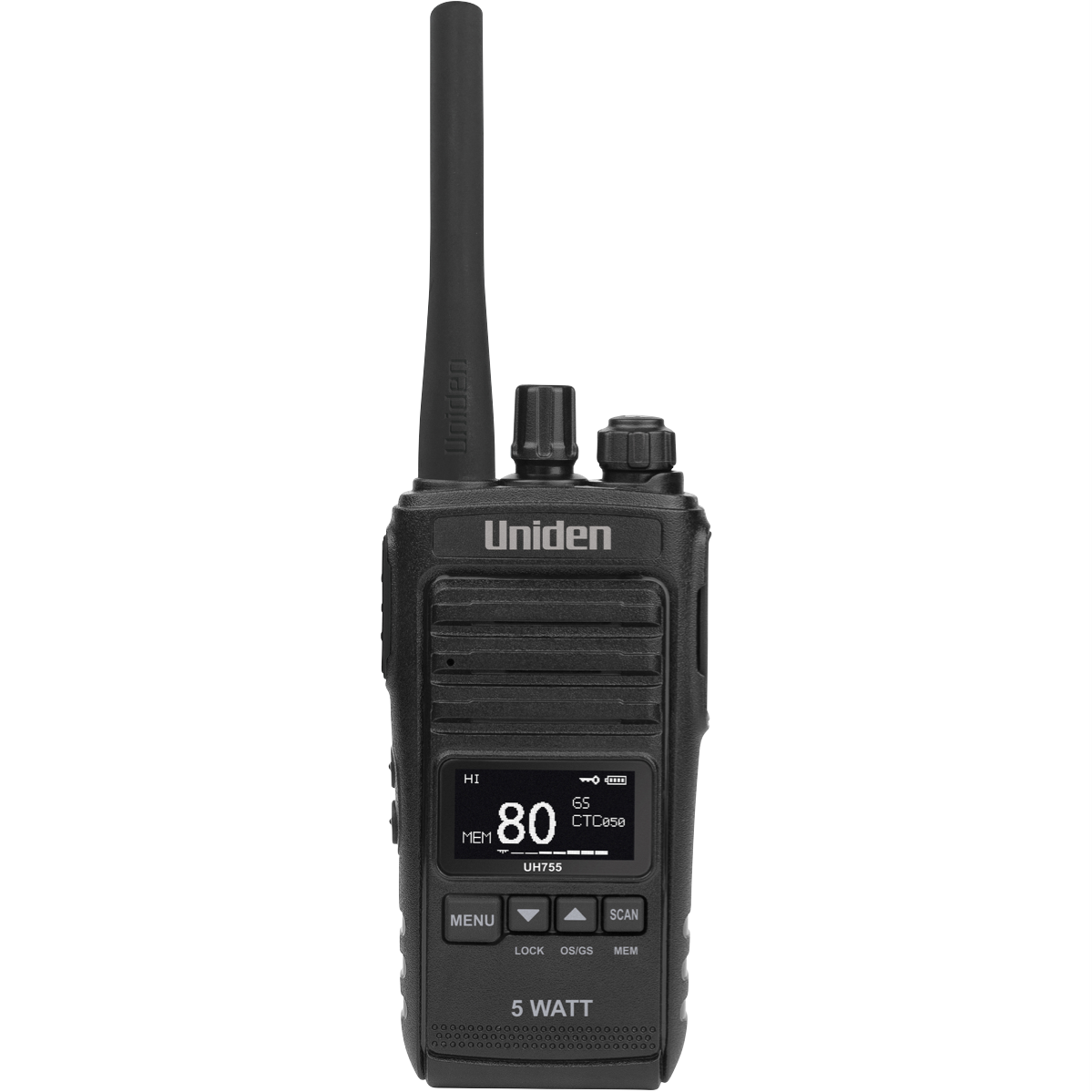 The UH755-2DLX is a UHF CB handheld radio. It can deliver up to 17km of range. This makes it the perfect unit for professionals who need a rugged and heavy duty radio suitable for various conditions.It also features a splashproof design making it flexible to operate in many environments. The Backlit LCD Dot Matrix Display makes it easy to see in both night and day. It has the ability to be able to communicate up to a 17km range allowing users to stay connected on their next adventure even in the most remote locations without mobile reception. The Shared Channel Quiet Filter ensures the radio stays quiet when sharing a busy channel only allowing transmissions from radios using the same code.