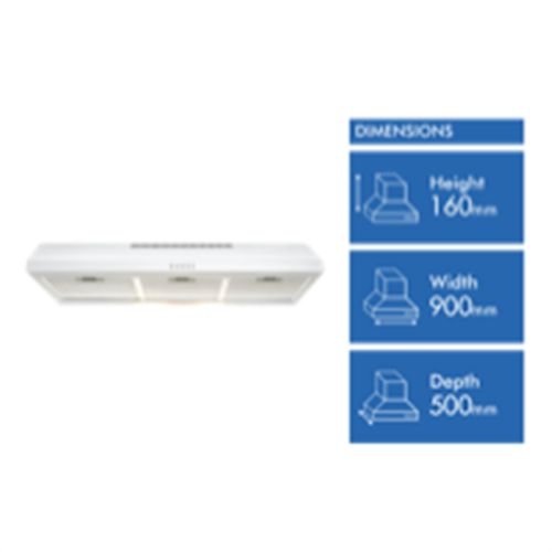 Put an end to wanting to improve your home. The Viali VF90W is a fixed hood. Beyond that its 250 cu m/hr extraction capacity helps you keep your cooking area free of smoke and steam. This VF90W rangehood features 3 speed settings. It has LED lighting so you can see your food as it cooks. Plus the VF90W features aluminium filters and a ducted design. Select your desired fan speed and lighting with its push button controls. The Viali VF90W has an aluminium and white finish. What's more it boasts a 2 year manufacturer warranty. The Viali rangehood has a 900mm width with a 160mm height. You can clear out fish-fry and other odours that tend to linger thanks to this Viali rangehood.