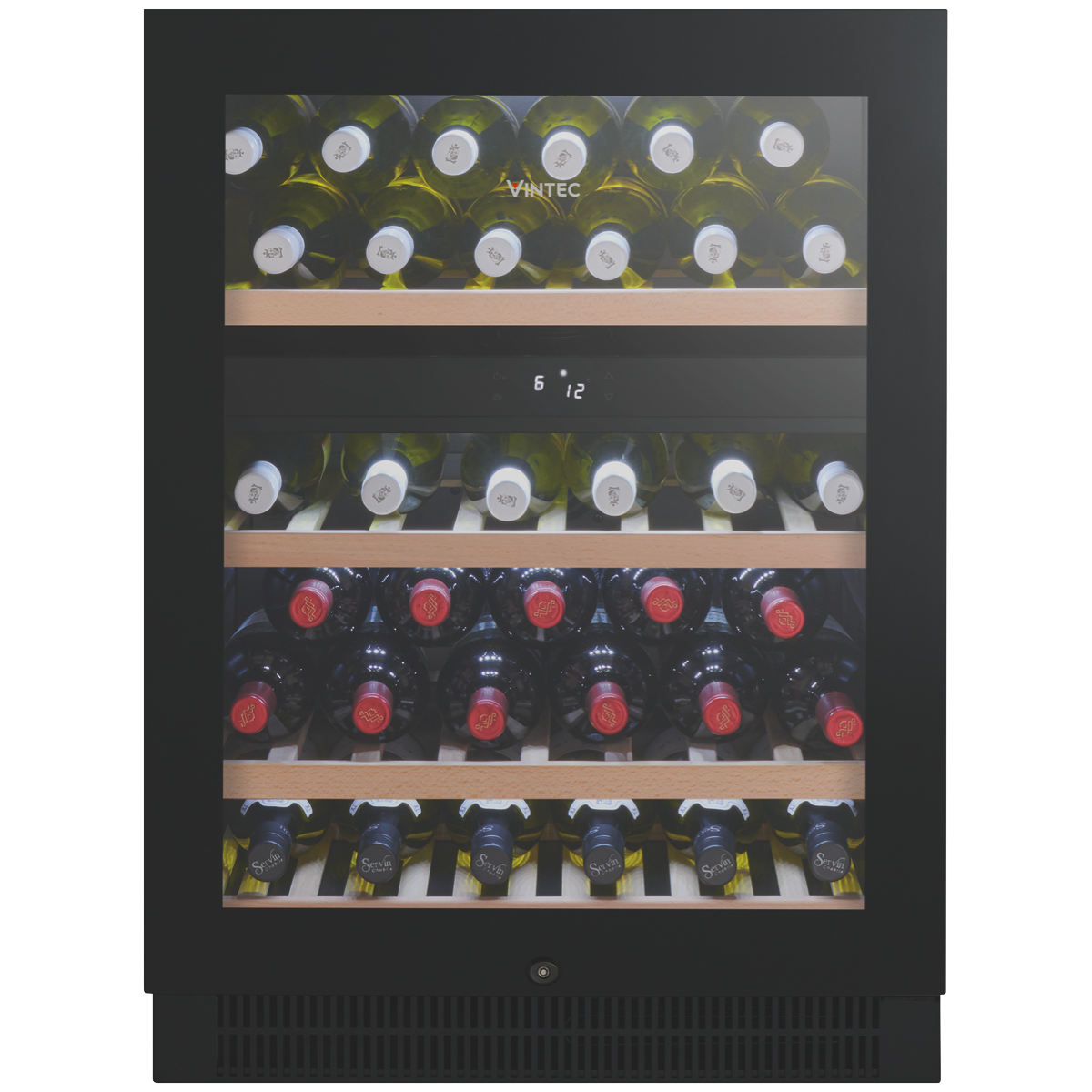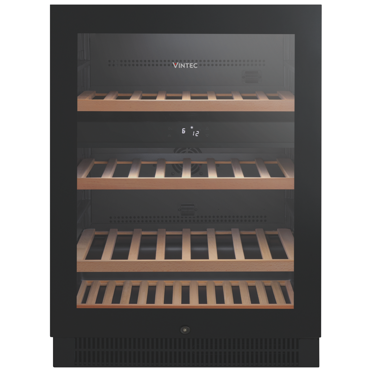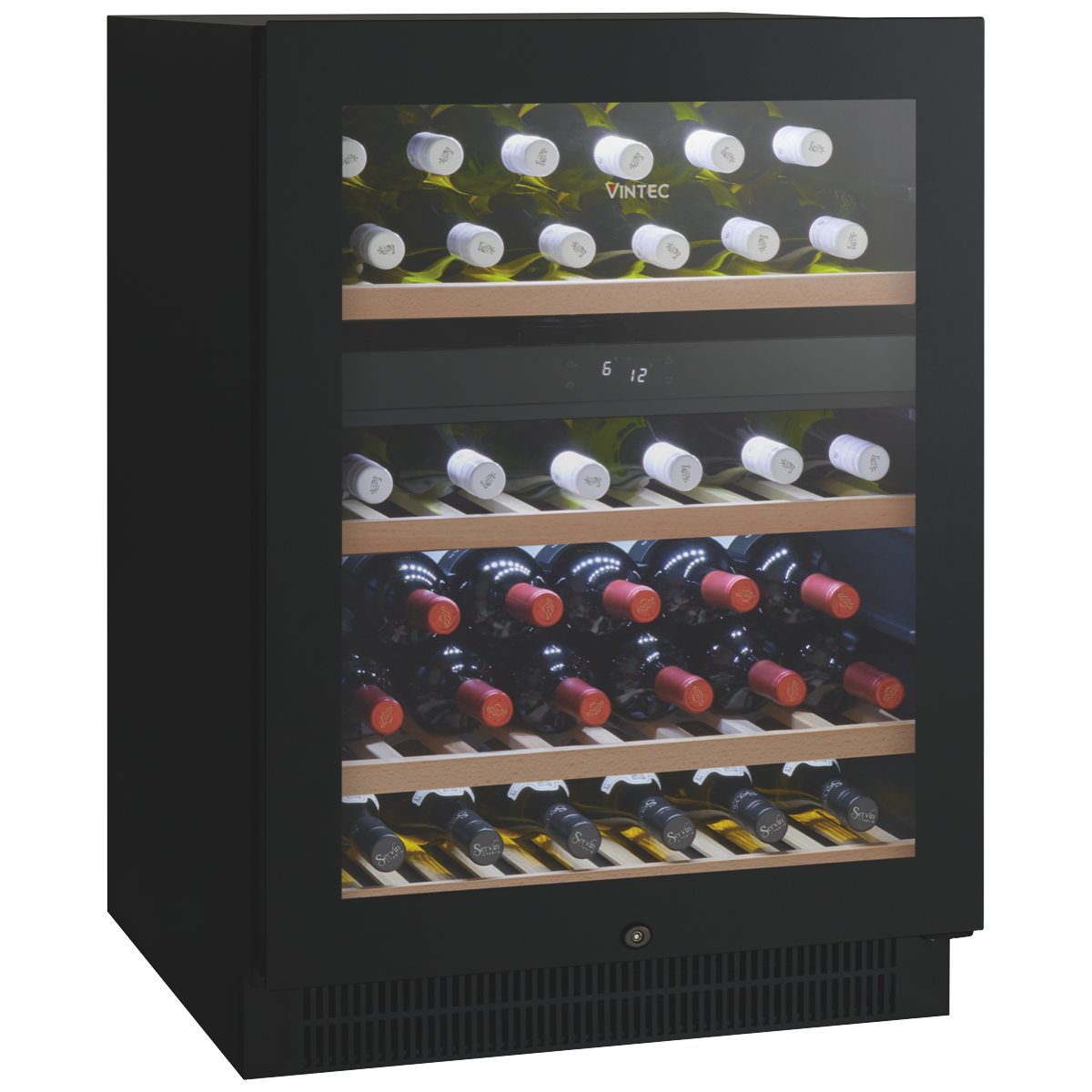 Functionality and luxury come together to store your favourite varietals in the Vintec 50 Bottle Dual Zone Cabinet (VWD050SBB-X). The smart Vintect design creates great functionality that both maintains the perfect temperature for both your white and red wines; Dual Zone provides two separate temperatures to cool your whites (6-8) while maintain a 16-18 for red or 12-14 for cellaring. The temperature of some areas especially in winter can affect the way you store your wine & cellaring; the equipped heat function maintains constant temperature within the cabin all throughout the entire year. Maintaining a consistent temperature throughout your cabinet keeps all your wine tasting at its absolute best working together to achieve this is the triple glazed glass door insulated side panels and communication between the thermostat(1) and compressor. The sun's UV rays can shine onto your wine and reduce the quality of your favourite bottles; dimmed internal LED lights dark interior and UV treated tinted glass door all prevent the negative effects associated with UV rays. To maintain the optimal quality and storage in the cabinet is the rubber shock absorbers externally housed compressor and vibration absorbing wooden shelves which reduce the negative effects associated with external vibrations.