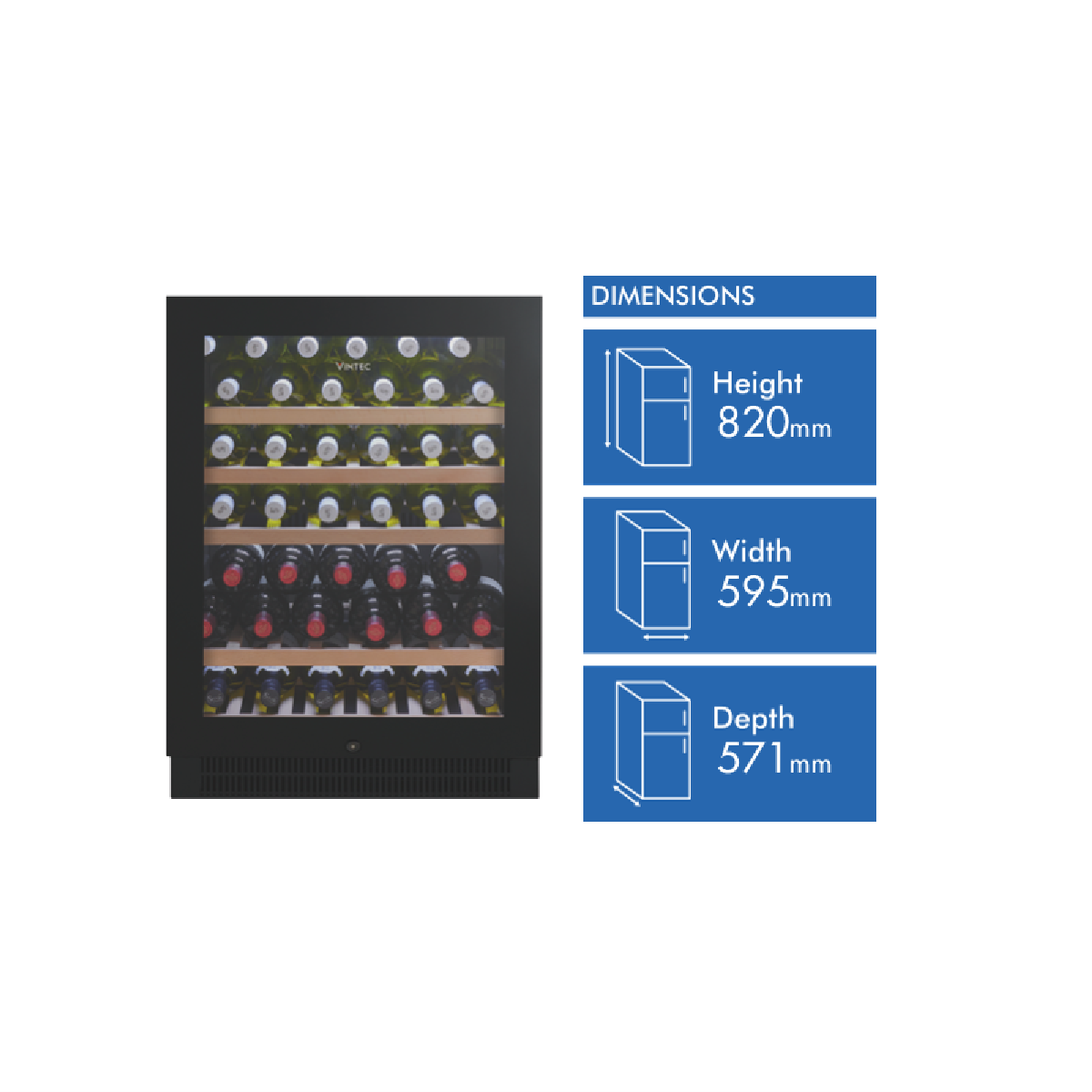 50-bottle Single-Zone wine cabinet which can be set for cellaring all wines OR serving red or white wines at drinking temperatures. *Capacity is based on 750mL Bordeaux bottle shape and size.