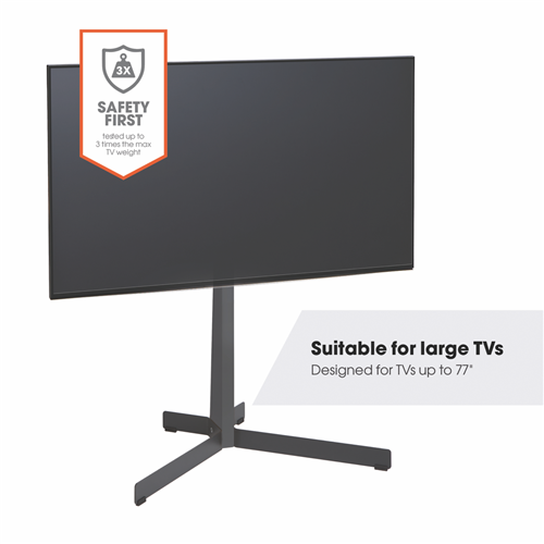 Create a stunning centrepiece in your living room with the Vogels TV Floor Stand. This sturdy black steel TV tilt stand provides flexible viewing angles for TVs 40-77 inches with a maximum weight capacity of 50kg and VESA mounting up to 600 x 400mm. With smooth tilt functionality you can reduce glare and adjust the screen to the perfect angle. The open frame design allows space for soundbars or other AV equipment while cable management slots keep cords tidy. Setup is quick and easy with the supplied hardware. With a durable steel construction and 10 year manufacturer's warranty this TV floor stand is built to last. Bring your entertainment to life and enjoy ideal viewing comfort with the Vogels TV Floor Stand. The manufacturer's part number for this product is TVS3690B.