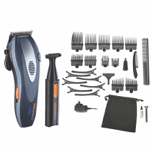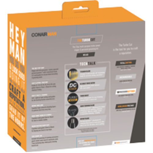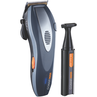 Take control of your style with the ConairMan The Turbo Cut hair clipper. This blue and grey cordless clipper delivers precision cutting and trimming for all hair types. Powered by a rechargeable battery with 40 minutes of cordless runtime the titanium coated stainless steel blades glide smoothly to cut and shape hair. Equipped with a DC direct drive motor and turbo boost it provides 50 precision settings for customized cutting. The clipper comes with multiple attachments like a barber comb scissors and blade guard. With a 2 year warranty this hair clipper will keep you looking sharp for years to come. The manufacturer's part number for this product is VSM2330A. Add this innovative clipper to your grooming kit today.