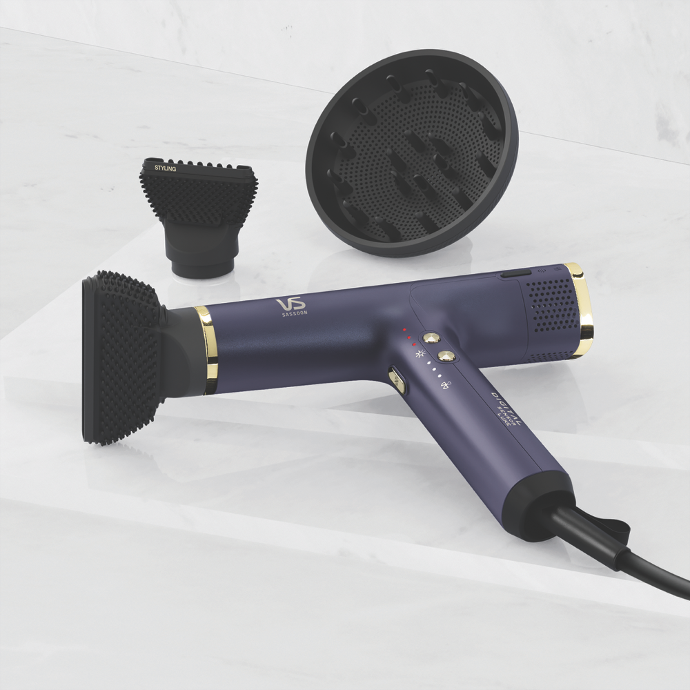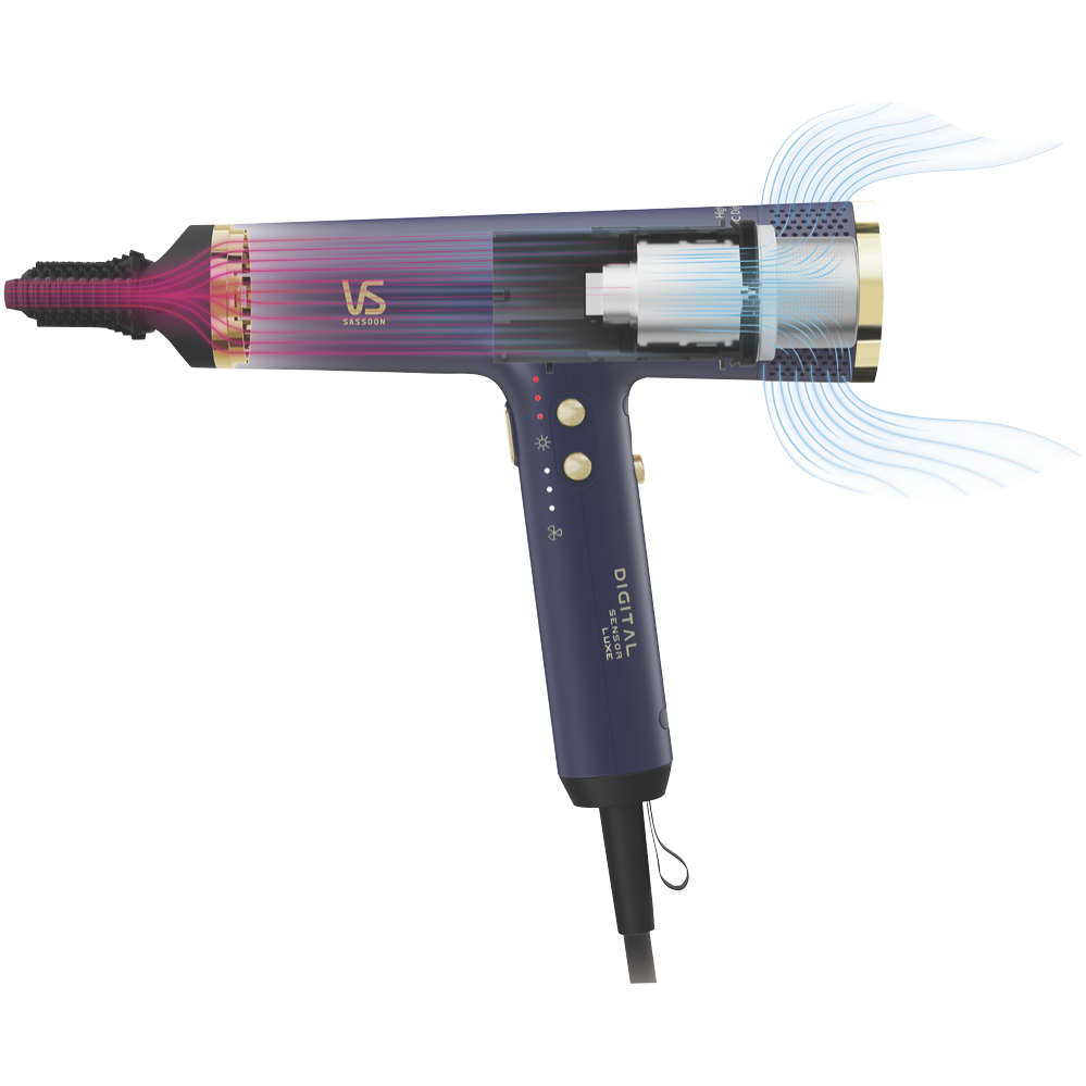 This VS Sassoon Digital Sensor Luxe Airsonic hair dryer makes styling a breeze. With 1600W of power and 4 speed settings you can dry your hair quickly and precisely. The 3 heat settings and cold shot let you customize your style while the ionic conditioning system keeps your hair smooth and frizz-free. Choose from 3 expert styling modes - Care Diffuse and Treatment - to get the look you want. The smart memory function remembers your preferences so you can start styling right away. The high-speed Airsonic EC Digital Motor and digital sensor technology work together for efficient drying. Plus with a 3m cord and lightweight 370g design you can move freely as you style. The VSD1887A even reminds you when to clean the filter so it keeps working at its best.