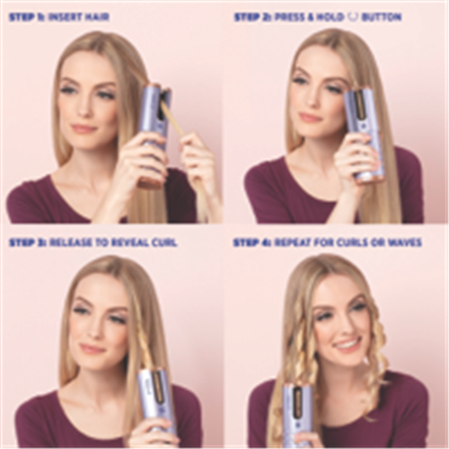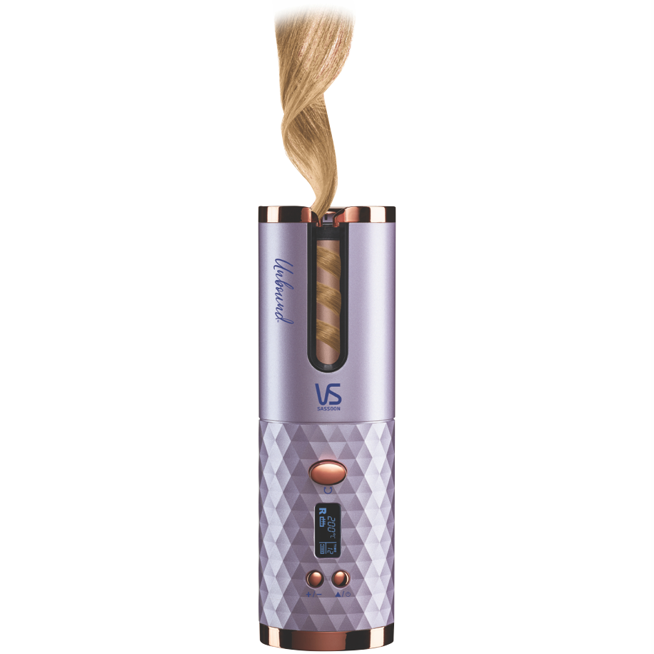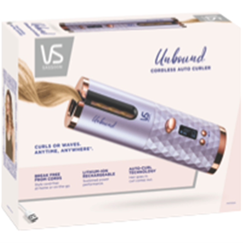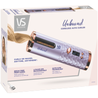 Looking to curl your hair with ease and style? The VS Sassoon Unbound Cordless Auto Curler delivers versatile multi-directional curling power in a lightweight cordless design. With ceramic-coated plates and ionic conditioning this innovative hair curler tames and smooths while creating bouncy beautiful curls. Choose from 3 precise heat settings up to 200°C and 4 customizable curl times to achieve your desired look. The intelligent safety features including auto shut-off ensure worry-free styling. The metallic purple finish and LED indicator lend modern flair. Curl flip and twist with this travel-friendly curling wand from VS Sassoon. Unleash gorgeous curls anywhere thanks to the cordless freedom and lightweight feel. The manufacturer's part number for this product is VSC510UA. Get salon-quality bounce and body minus the frizz with the VS Sassoon Unbound Auto Curler.
