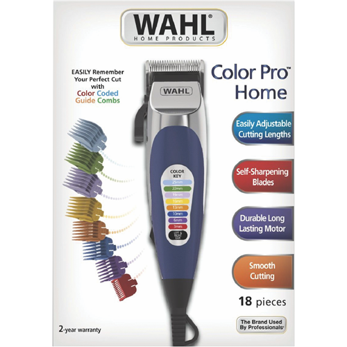 Looking to take your home haircuts to the next level? The Wahl Color Pro Home Clipper Kit (WA9243-7612) has everything you need. With precision-ground blades that stay sharp cut after cut and 10 color-coded guide combs ranging from 3mm to 25mm you can easily achieve the perfect look every time. The vibrating motor and comfortable grip make it a breeze to use while the included scissors barber combs blade guard cleaning brush and oil keep your clipper in top shape. Why pay for expensive salon visits when you can get professional results right at home?