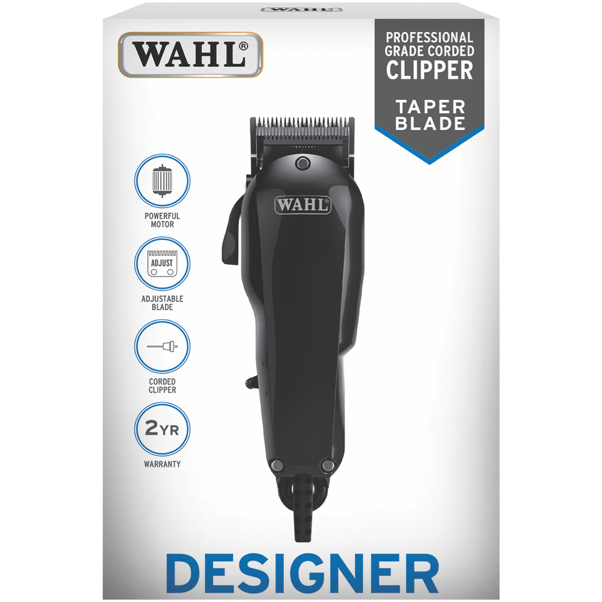 Looking for a fast and powerful hair clipper to quickly tame and shape your mane? The Wahl Designer Professional Barber Clipper delivers precise efficient haircuts with its high-quality German-made stainless steel blades. This corded clipper is designed for bulk hair removal and tapering whether your hair is wet or dry. The 40mm cutter width allows you to create smooth fades and tapered cuts with ease. Designed for barbers this chrome clipper comes with 4 guide combs a clipper comb cleaning brush blade oil and a clipper guard to keep your device in tip-top shape. Visualize yourself crafting sleek new styles with the Wahl clipper. With one-year warranty coverage you can confidently keep your hair well-groomed for years to come. The manufacturer's part number for this product is WA8472-532D. Discover the high-performance Wahl Designer Professional Barber Clipper today.
