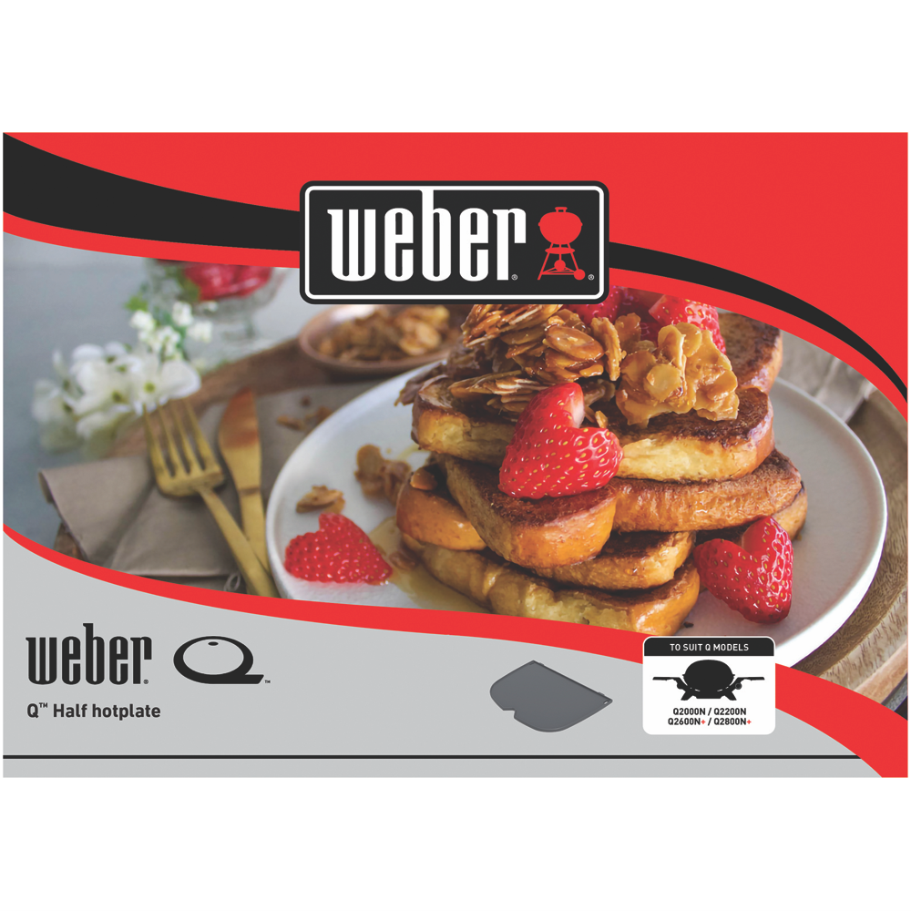 Sizzle up your outdoor cooking with the Weber Q Half Hotplate. This nifty accessory allows you to cook eggs bacon pancakes and more on one side while grilling on the other. Compatible with the Q2000N Q2200N Q2600N+ Q2800N+ Weber barbecues the 495 x 34 x 355mm hotplate easily attaches to your existing grill for versatile meal prep. With the convenience of 2-in-1 cooking and signature Weber quality you'll take your BBQ skills to new heights. The manufacturer's part number for this product is 3400167.