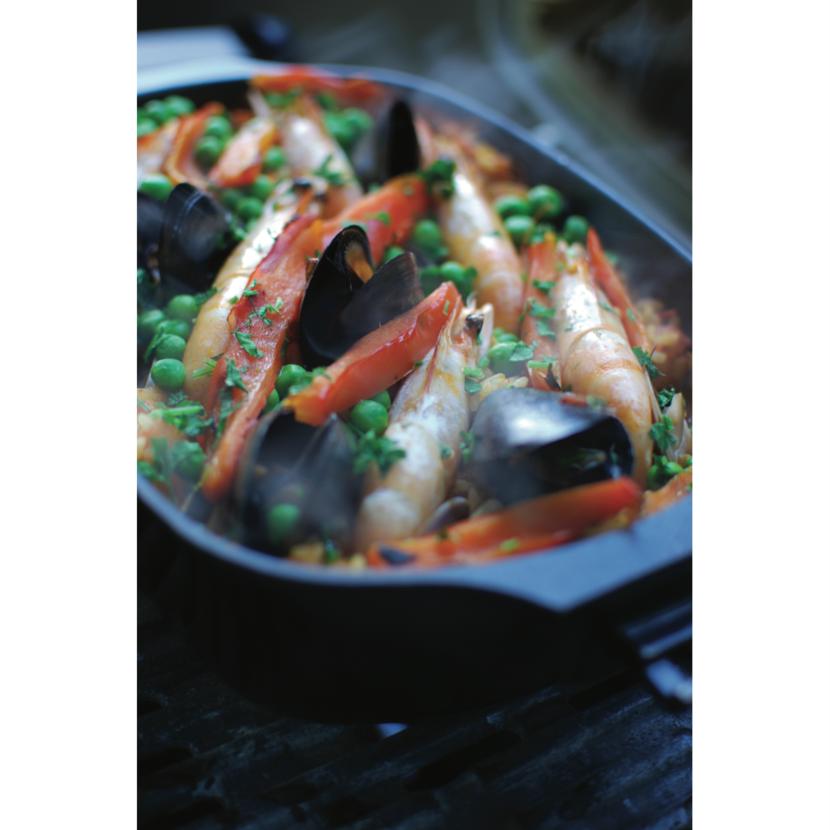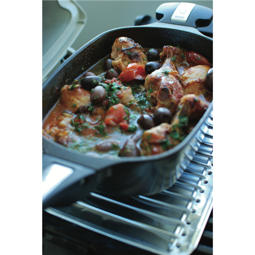 Step up your barbecuing game with the Weber Q Classic Ware Casserole Dish Large. This versatile barbecue dish pan is specially designed for Weber Q barbecues featuring a durable Teflon non-stick surface that allows you to cook up saucy stews tender roasts and more without food sticking. With handy removable handles and included glass lid you can easily transport your culinary creations from the barbecue to the dinner table. The two handles make it simple to lift the pan off the barbecue once your meal is cooked to perfection. And when dinner is done the durable non-stick surface cleans up easily so you can get back to enjoying dessert. Whether you're cooking for the whole family or hosting a barbecue with friends this large casserole dish has the capacity you need to whip up hearty portions. The manufacturer's part number for this product is 17634. Seize the day and enjoy delicious barbecue casserole dishes with this handy pan.