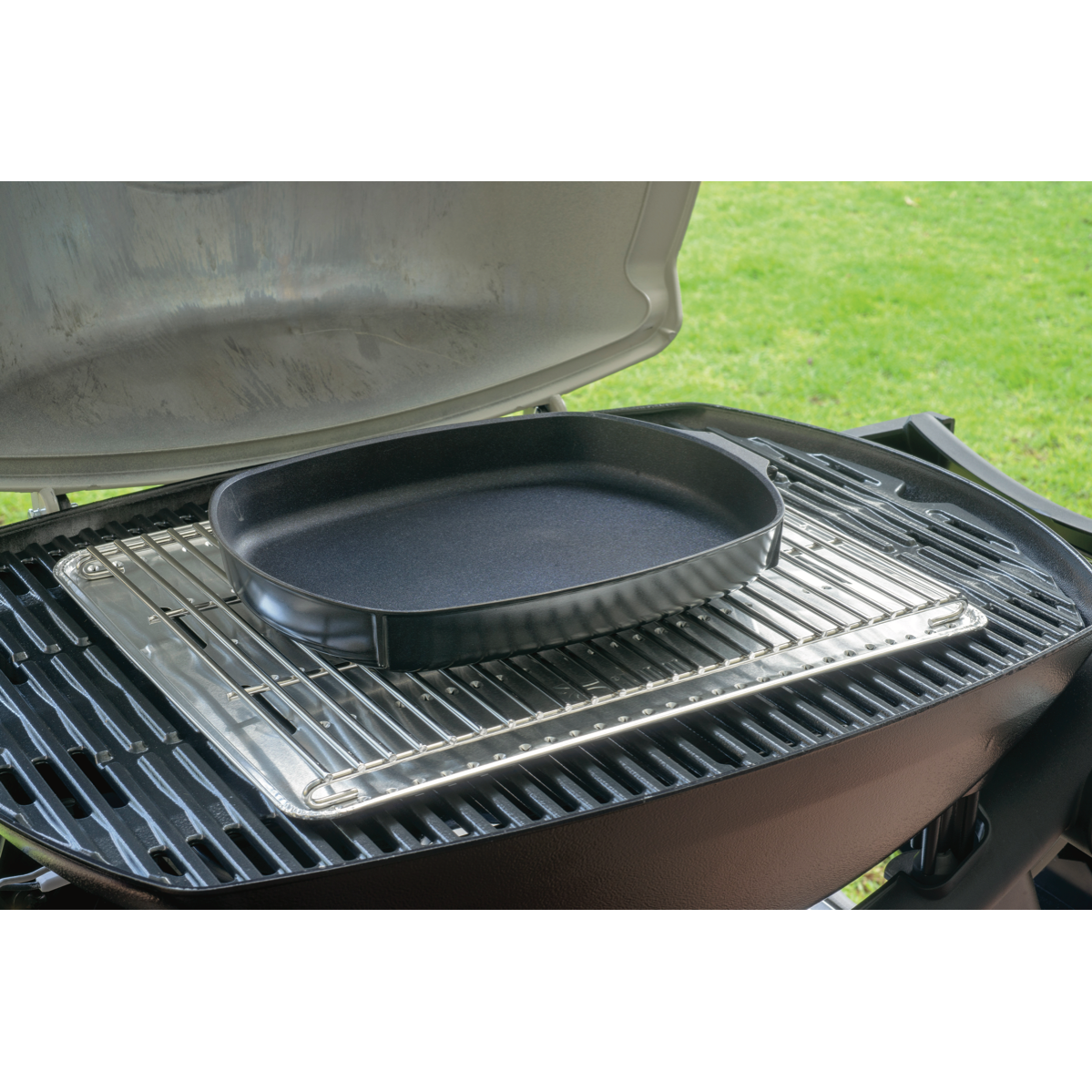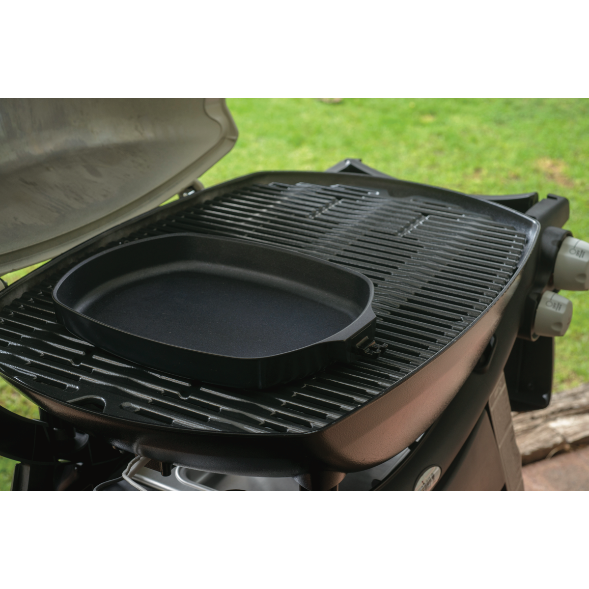 Elevate your outdoor barbecue game with the Weber Q Classic Ware Large Fry Pan. This platinum teflon coated frying pan is specially designed for use with the Weber Q gas barbecue range allowing you to cook up delicious stir fries frittatas or pancakes on your BBQ. The premium non-stick surface makes cooking and cleaning a breeze while the detachable handle ensures safe and easy transportation to and from the grill. With its spacious 30cm diameter cooking area this frying pan lets you whip up hearty portions to share. Whether you're hosting a weekend brunch or firing up a weeknight dinner the Weber Q frypan is your ticket to sizzling BBQ cuisine. From breakfast skillets to crispy veggies the possibilities are endless with this multipurpose BBQ pan. Crafted from quality materials for durability this frypan will be your grilling go-to for years to come. The manufacturer's part number for this product is 991155. Add this must-have barbecue accessory to your outdoor cooking repertoire today.