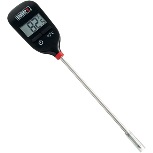 The Weber Instant Read Thermometer is the fast and accurate solution for monitoring your barbecue. With the ability to provide precise temperature readings in seconds this digital thermometer takes the guesswork out of grilling. The large easy-to-read display shows temperatures in either Fahrenheit or Celsius at the touch of a button so you'll know exactly when your steaks chops burgers and more are cooked to perfection. An ultra-fast thin probe gets temp readings 2-3 times faster than conventional thermometers so you spend less time waiting and more time enjoying perfectly cooked food hot off the grill. This instant read thermometer is a must-have for backyard chefs who want foolproof results at the barbecue every time. Durable and reliable it delivers the speed and accuracy you need to master grilling. The manufacturer's part number for this product is 6750. Grill with confidence by adding this instant read thermometer to your BBQ toolkit today.