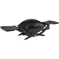 You'll have the best of both worlds with this Weber Q2000 LP gas barbecue 53010024. It's large enough to feed up to ten people in your backyard yet portable and compact enough to take on family holidays. The Weber Q2000 Black is easy to operate with a push button spark ignitor which starts pre-heating straight away so you'll be cooking in as little as ten minutes. The cast iron cooking grills split in half so you could replace one grill with an optional Weber Q hotplate to have prawn skewers sizzling at the same time as grilling steaks on the other side. Or you can roast a leg of lamb or bake a dessert with the optional Weber Q Convection Tray and Q Trivet. It turns the Weber 53010024 into an instant oven and keeping the lid down ensures food cooks evenly by the natural convection hot air. Also the swing out working surfaces are a handy place for utensils and keeping your marinades close by and the removable drip tray makes cleaning easy afterwards. The Weber Q is built tough with a durable cast aluminium lid and body and comes with a five year limited warranty. There are loads of recipes to try with the included Q recipe handbook. Cooking a mouth-watering barbeque at home or while away is made easy thanks to this Weber Q barbeque. Please note - the Weber Q Patio Cart is not included and is available to purchase separately Model No. 6524.
