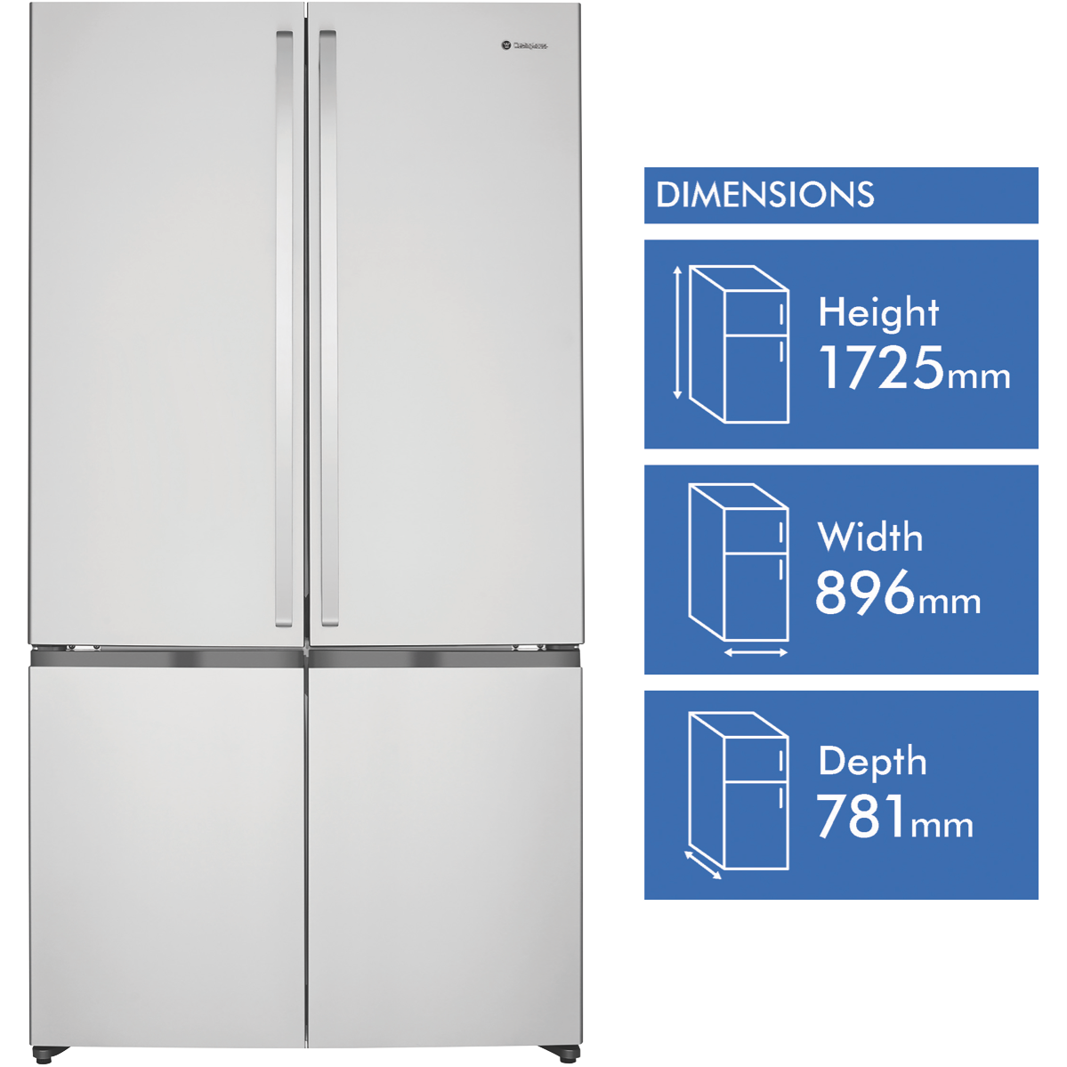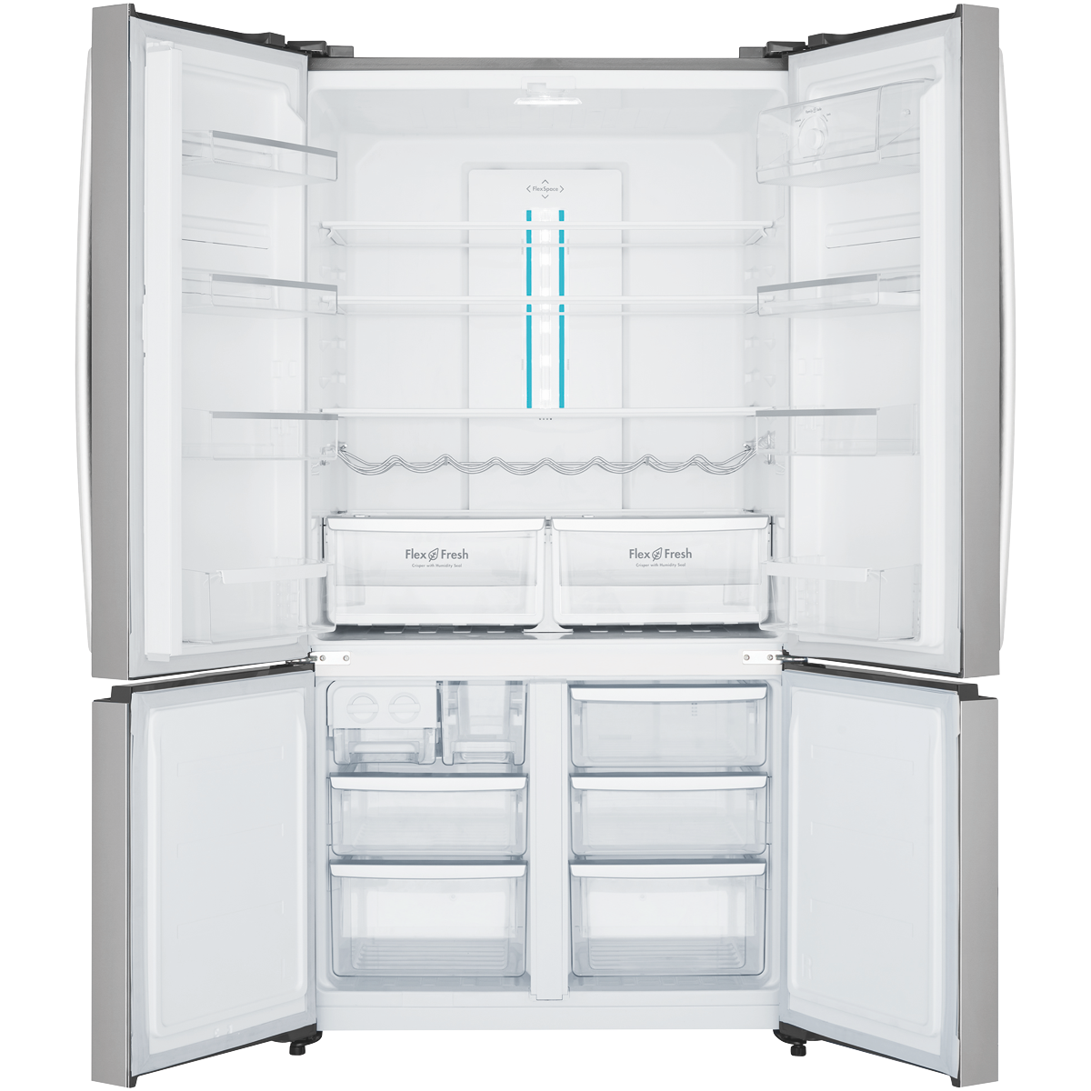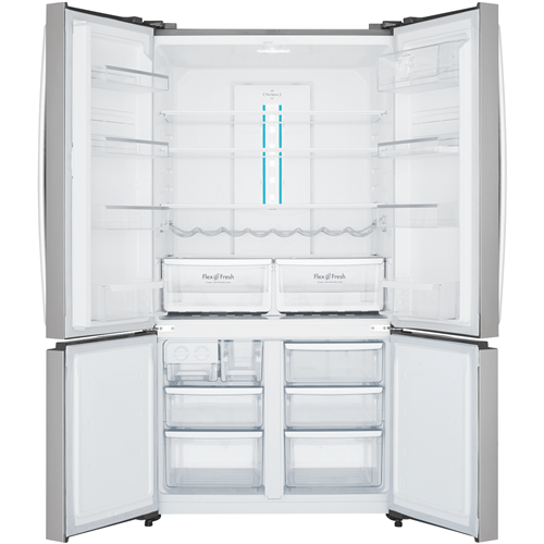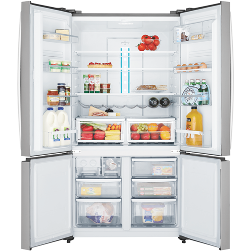 Find your perfect chilling and freezing solution for your food and drinks in the Westinghouse 541L 4 Door French Door Refrigerator (WQE6000SB). Suit your fridge to suit the family the occasion or the season with the FlexStor storage design; you can easily configure and arrange the height and positions of the door bins to fit larger or smaller items. Alongside this storage solutions continue with FlexSpace arrange the shelves and fridge cabin to cater to accessing larger meals or platters of fresh delicious food. The Dual FlexFresh Easy Glide Crispers with humidity control seals tightly to secure the perfect environment to keep your fruit and vegetables fresh and tasty. Spillsafe glass shelves support life's food related accidents by holding up to a litre of liquid this makes cleaning and easier and prevents further spillages onto other food items.