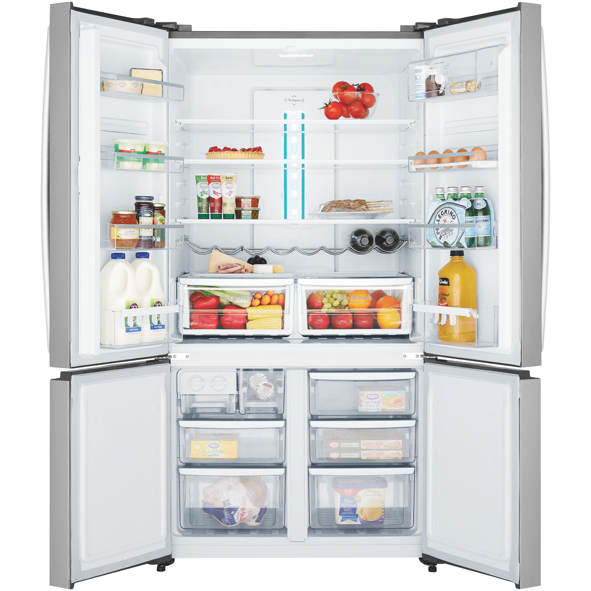 Additional Features Adjustable Storage Solutions with FlexStore, Adjustable SpillSafe Glass Shelves, Dual FlexFresh Easy Glide Crispers, Multi-flow Air Delivery System, FamilySafe™ Lockable Compartment, Adjustable Front Rollers