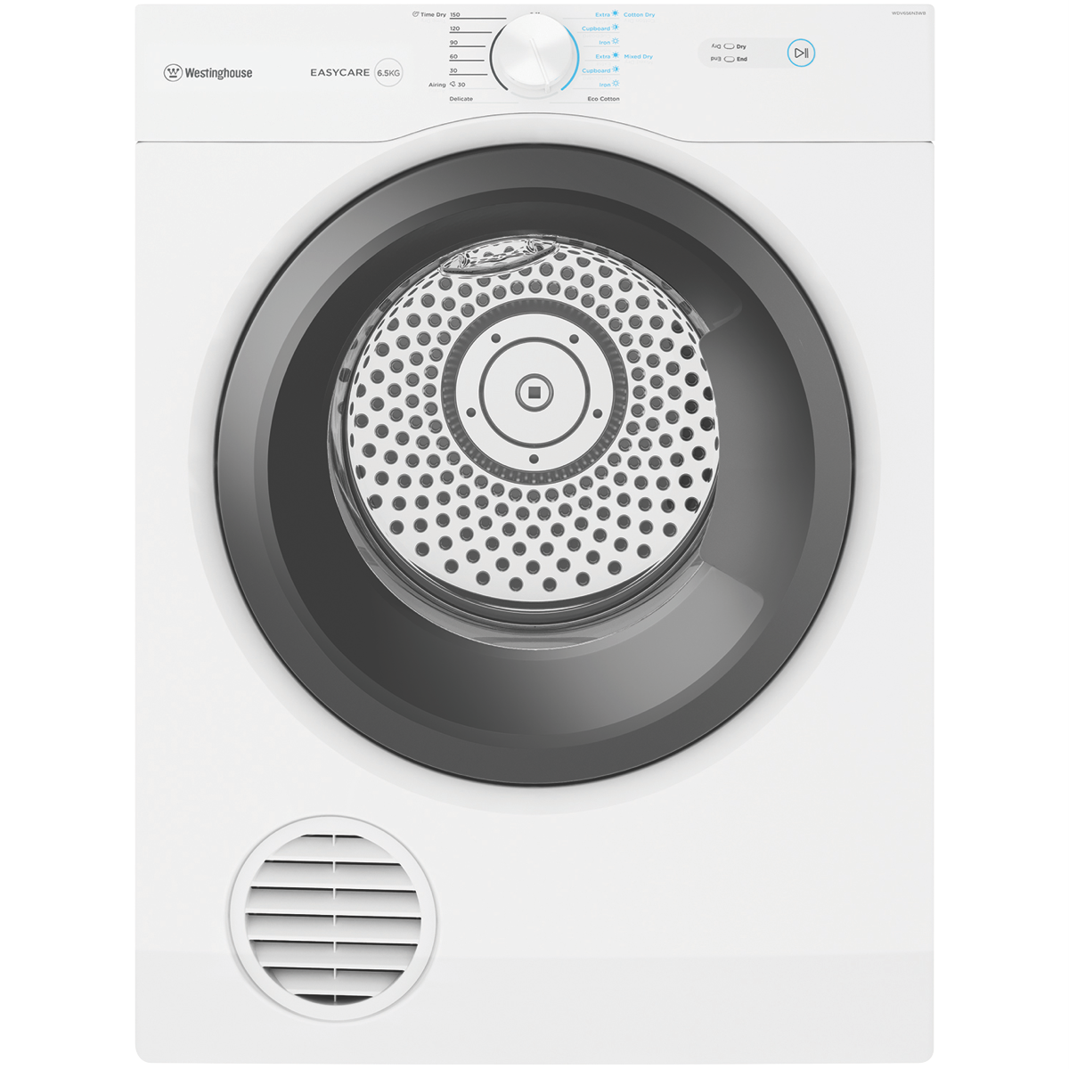 Make laundry day simpler and more efficient with the Westinghouse 6.5kg Vented Dryer. This medium capacity dryer features a stainless steel drum with reverse tumbling action to gently dry clothes. With 6 drying programs including Timed Drying Cotton Delicate Eco Cotton Airing and Mixed you can customize cycles to suit different fabrics. Auto Sensing technology detects moisture levels and automatically adjusts drying time for optimal results. The front lint filter is easy to access for quick cleaning between loads. Mount this vented dryer on the wall to save floor space. At just 600mm wide it fits into compact laundry areas. The white finish blends seamlessly into your existing decor. Set the buzzer to alert you when loads are done. With extra cupboard and iron dry settings remove clothes at your preferred dryness level. The Auto Cool Down function prevents over-drying and wrinkling.The Westinghouse 6.5kg Vented Dryer includes a 2 year manufacturer's warranty for peace of mind. Convenient features like time drying stainless steel drum and flexible venting make laundry simple. Bring efficiency convenience and versatility to your laundry with this vented dryer. The manufacturer's part number for this product is WDV656N3WB..