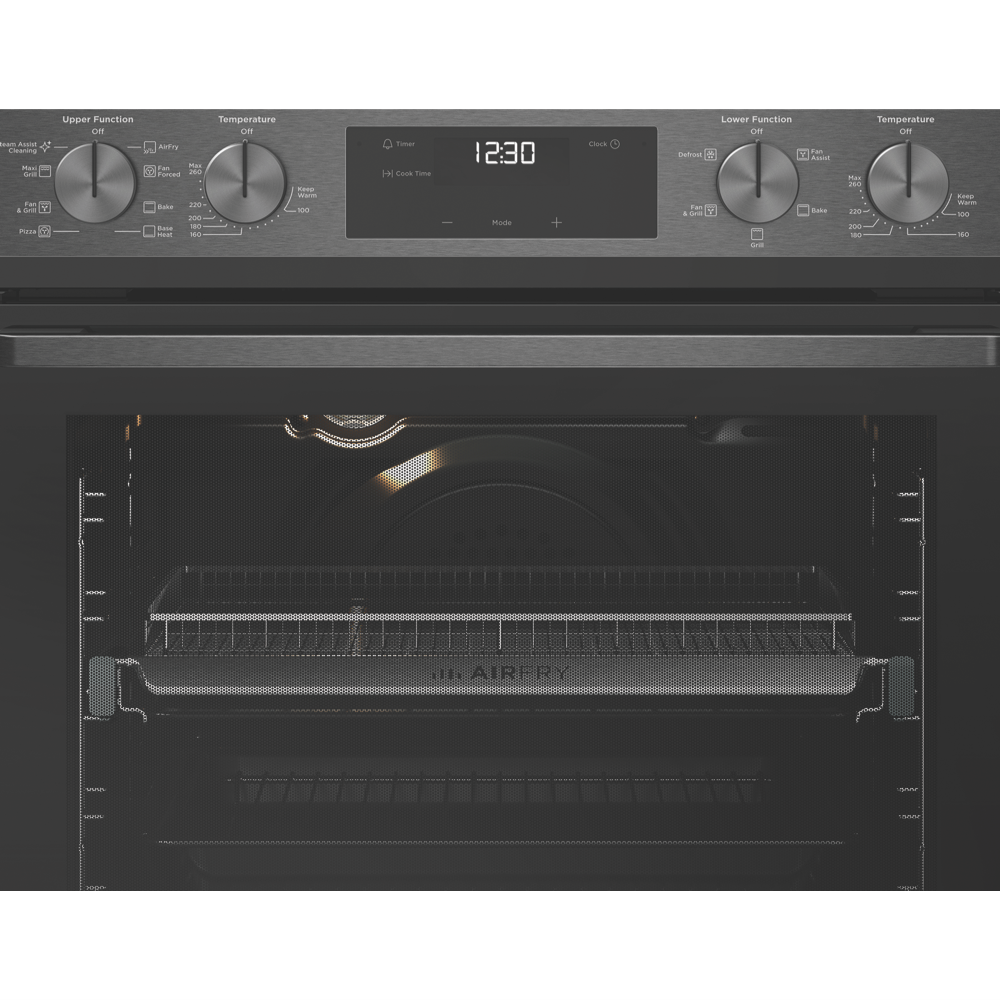 Oven Functions Main Oven 8: Rapid heat, Defrost, Base heat, Bake/pizza, Grill, Fan grill, Maxi grill, Fan forced cooking, Second Oven 5: Grill, Fan assist bake, Traditional bake, Fan grill, Defrost