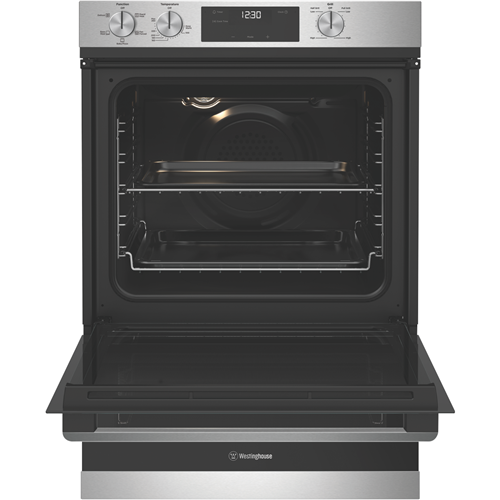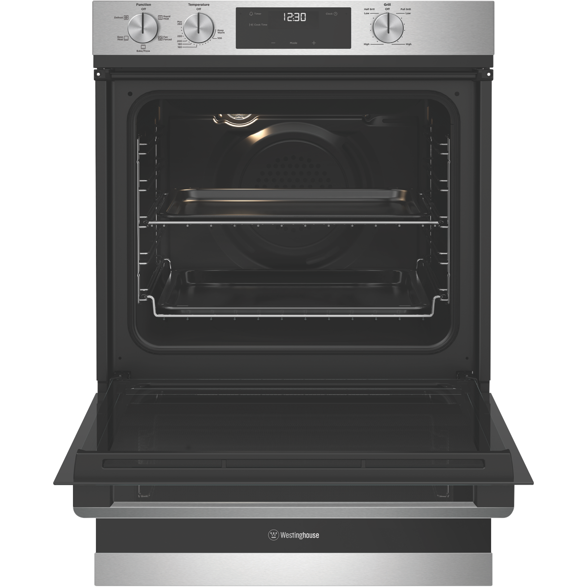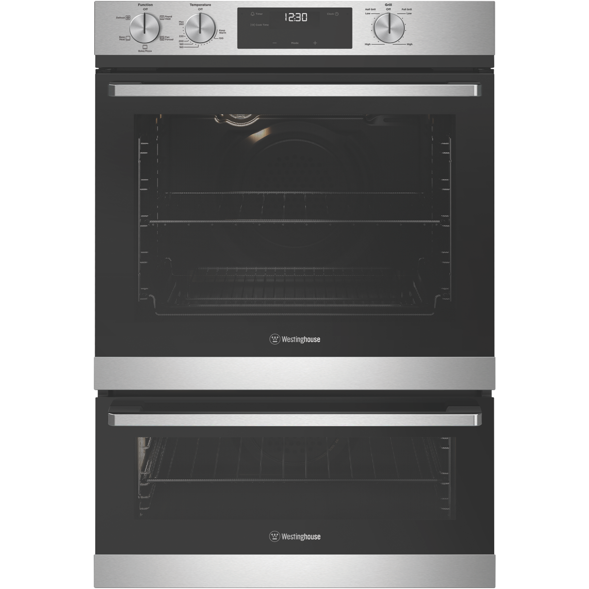 Take your cooking experience to the next level with the Westinghouse 60cm Electric Double Oven with Separate Grill. This versatile stainless steel appliance will be the star of your kitchen with its sleek design and array of convenient features. The spacious 72L main oven has five different functions like rapid heat bake and fan forced cooking so you can prepare everything from crispy pizzas to juicy roasts with ease. Meanwhile the 38L second oven gives you extra room to cook multiple dishes at once. Both ovens are controlled by easy-to-use knobs and an LED touch display with a programmable timer.With a separate grill you can quickly brown meats toast sandwiches and melt cheese on top of casseroles and pasta bakes. The inclusion of handy accessories like a baking tray grill insert and chromed wire shelves provides everything you need to get cooking straight away. Durably constructed with a two year manufacturer's warranty this double oven will be a stylish and reliable addition to your kitchen. The manufacturer's part number for this product is WVE6565SD. Bring home delicious versatility with the Westinghouse 60cm Electric Double Oven today.