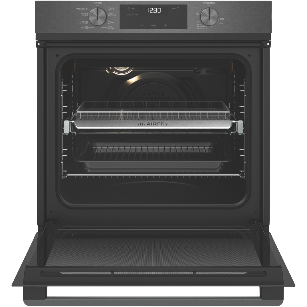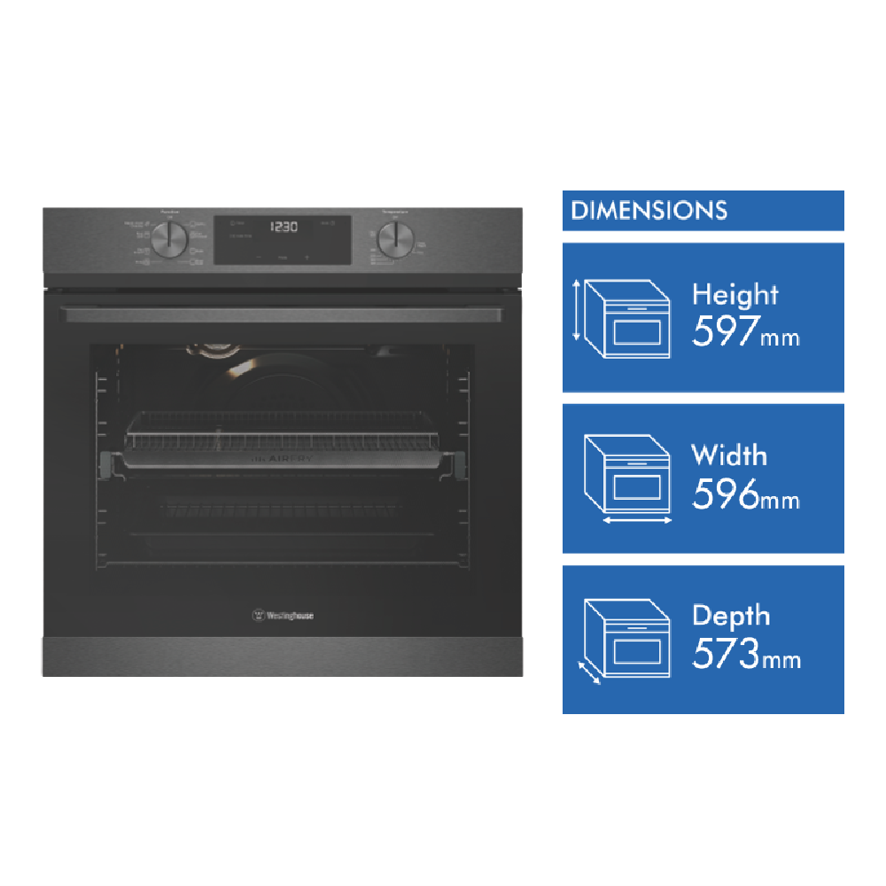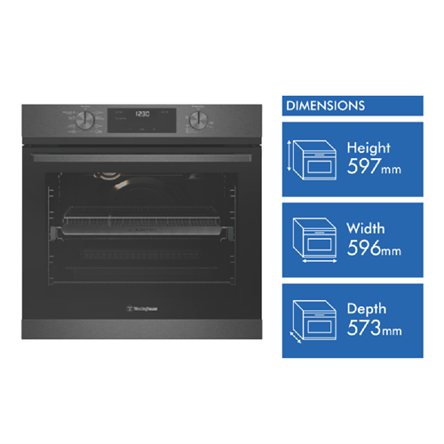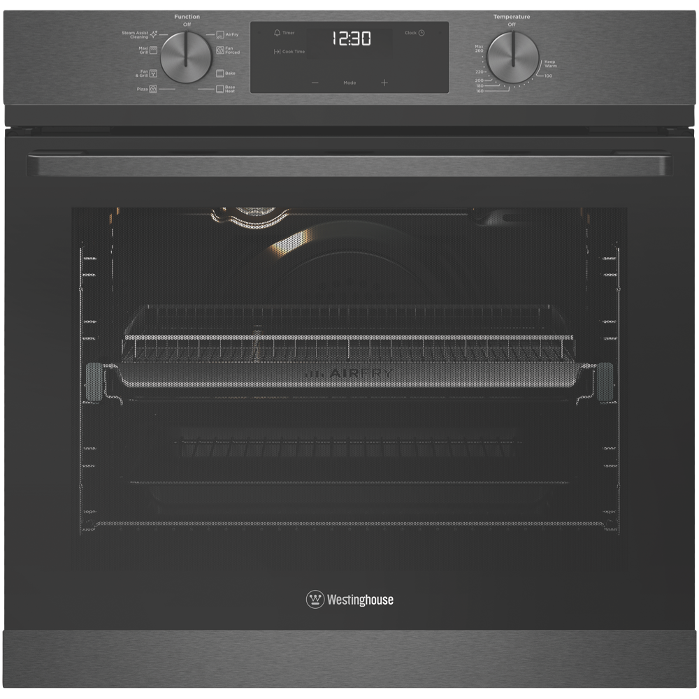 Bring home the convenience of multifunction cooking with the Westinghouse 60cm Electric Oven in dark stainless steel. This versatile oven features 8 cooking functions including AirFry SteamAssist Clean traditional bake and more to handle all your culinary needs. The generous 72L capacity accommodates large meals while the drop down door and removable inner glass panes allow for easy access and cleaning. With a sleek dark stainless steel finish this Westinghouse oven adds modern style to your kitchen. The touch control LED and control knob make operation simple. Bake broil roast or steam - this electric oven has the settings you need to unlock your full cooking potential. The included accessories like chromed shelves grill pan baking trays and more equip you to cook diverse dishes. This Westinghouse oven helps you serve up delicious results with features tailored for Australian homes. The manufacturer's part number for this product is WVE6516DD. Bring home versatile multifunction cooking with the Westinghouse 60cm Electric Oven today.