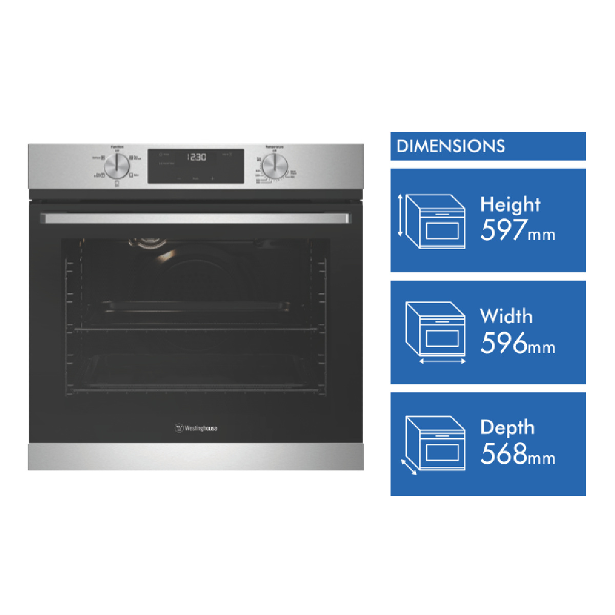 Step into the kitchen of your dreams with the Westinghouse 60cm Gas Oven. This single stainless steel oven brings style and convenience to your cooking experience. The fingerprint resistant finish keeps it looking as sleek as the day you bought it. Five versatile functions - including traditional bake grill and fan forced cooking - allow you to prepare everything from crispy pizzas to juicy roasts with ease. The 72L capacity accommodates large batches and big gatherings. An illuminated 3 button touch control with programmable timer makes operation a breeze. The included accessories like grill inserts chromed wire shelves and baking trays equip you for any recipe. With a 2 year manufacturer's warranty you can cook with confidence every day. This Westinghouse oven must be installed by a licensed professional. The manufacturer's part number for this product is WVG6515SD. Bring restaurant-worthy results into your home kitchen with the Westinghouse 60cm gas oven today.