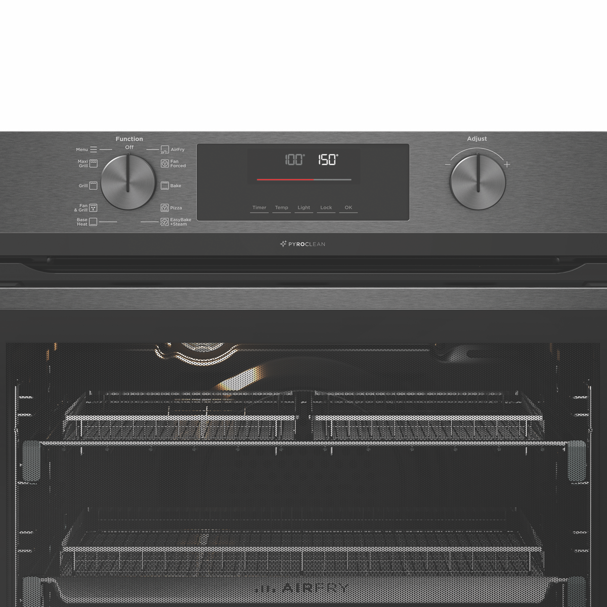 Oven Functions 10: Fan grill, Traditional bake, Pizza, Rapid heat, Grill, Fan forced cooking, AirFry, EasyBake plus Steam, Maxi grill, Base heat, Pyroclean