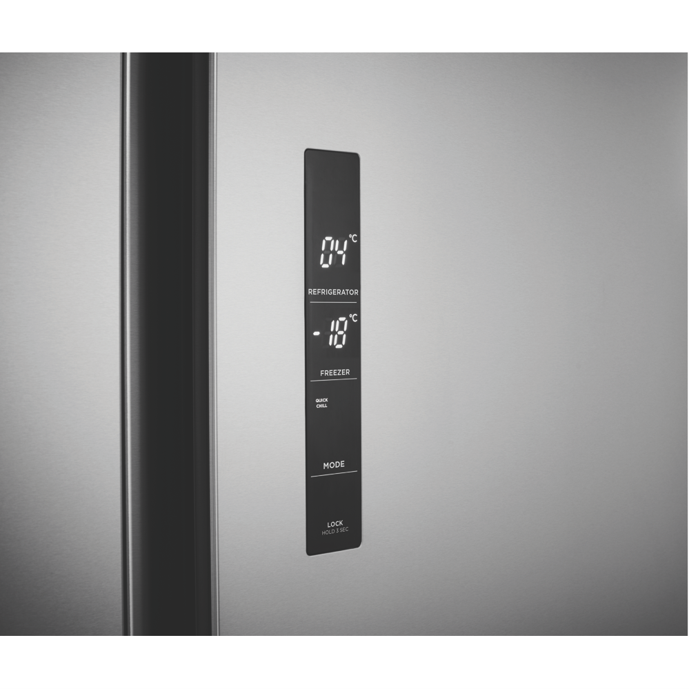 Additional Features FreshSeal Crisper, SpillSafe Glass Shelves in the fridge %26amp; freezer, Fast Chill %26amp; Freeze functions, Two twist %26amp; server icemakers in freezer, Energy saving holiday mode, Electronic touch controls, LED lighting, Egg tray, Flat door with integrated handles, F