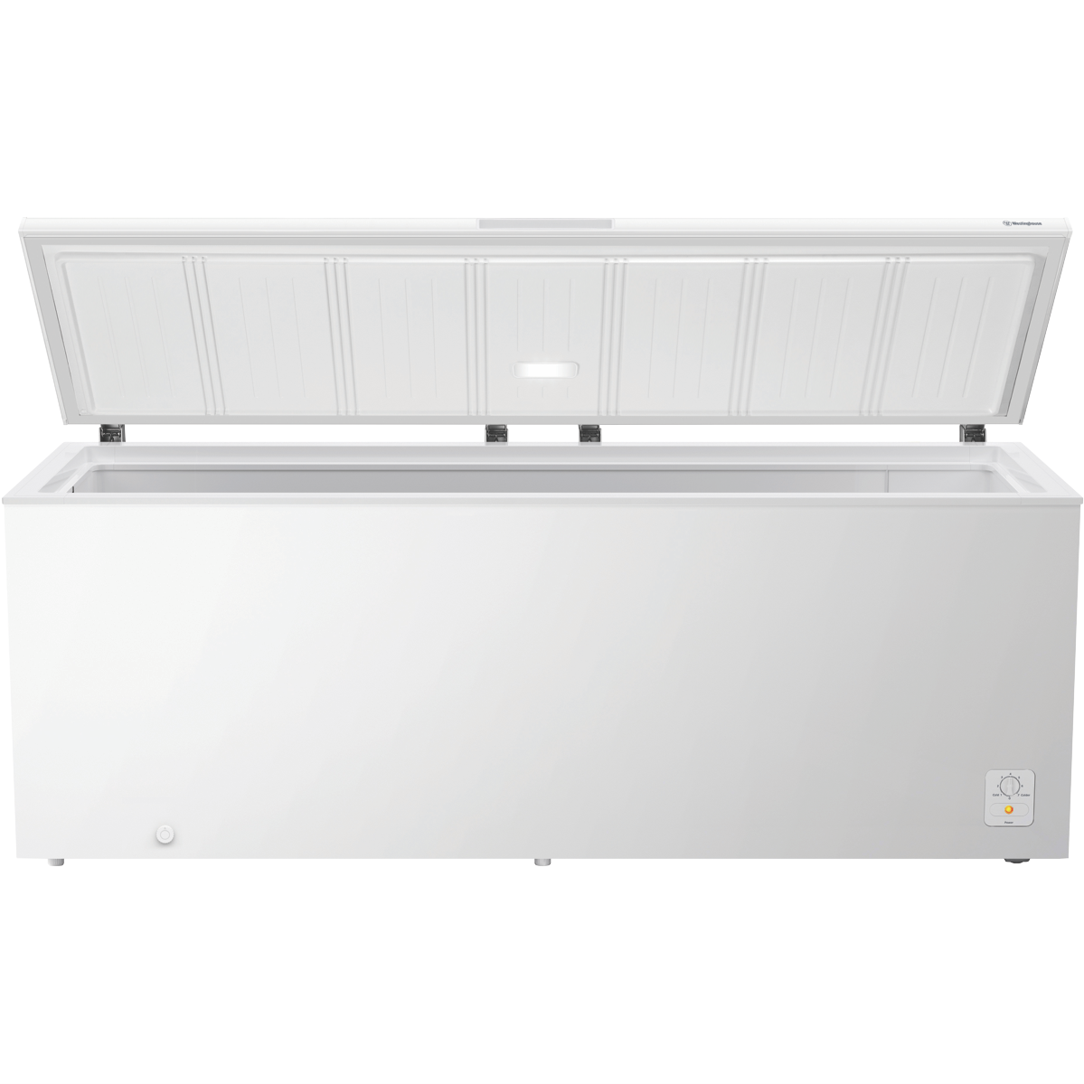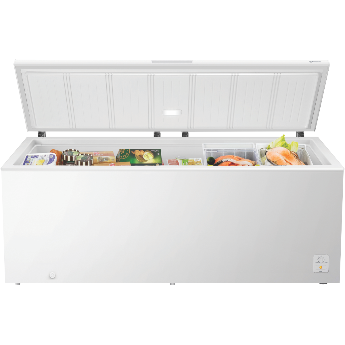 Keep your food fresh for longer with the spacious Westinghouse 702L White Chest Freezer. Featuring a top opening lid this freezer offers easy access and ample storage with its 702 litre capacity interior. Maintain an efficient temperature thanks to the quick chill function that rapidly cools to the optimum temperature after the lid has been opened. The removable high insulation door seal and hovering door design work to prevent cold air leakage and heat transfer for optimal freezing. Organize your frozen goods with the inclusion of two removable baskets that allow you to separate and sort items. Additional handy features like the recessed handle ultra thin hinges adjustable legs and power-off protection all contribute to a freezer that is convenient and reliable for daily use. Rest assured that your food is safely frozen with the R600a refrigerant and white inner liner. Covered by a 2 year manufacturer's warranty this chest freezer is built to last while providing ample 702 litre storage. The manufacturer's part number for this product is WCM7000WE. Take advantage of the large capacity and energy efficiency of the Westinghouse 702L Chest Freezer today.