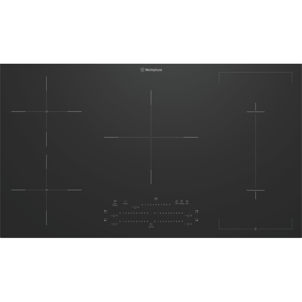 Step up your cooking game with the sleek 90cm Westinghouse Induction Cooktop. This stylish black ceramic glass cooktop will be the centerpiece of your kitchen with its modern induction technology and intuitive touch controls. Five induction cooking zones allow you to boil fry simmer and sear with precision across the spacious cooktop surface. The induction elements heat pans directly instead of the cooktop delivering faster heating reduced energy use and easy cleaning since spills won't burn on the surface. Programmable timers keep warm and pause functions give you complete control over cooking tasks. Bridging and MaxiZone features let you combine zones for larger cookware or oblong pans. Safety features like child lock automatic shut off and residual heat indicators give you peace of mind. This cooktop's black finish and slimline design will complement any modern kitchen. With a 2 year manufacturer's warranty you can cook with confidence on this feature-packed Westinghouse induction cooktop. The manufacturer's part number for this product is WHI955BD. Bring restaurant quality cooking into your home kitchen with this induction cooktop today.