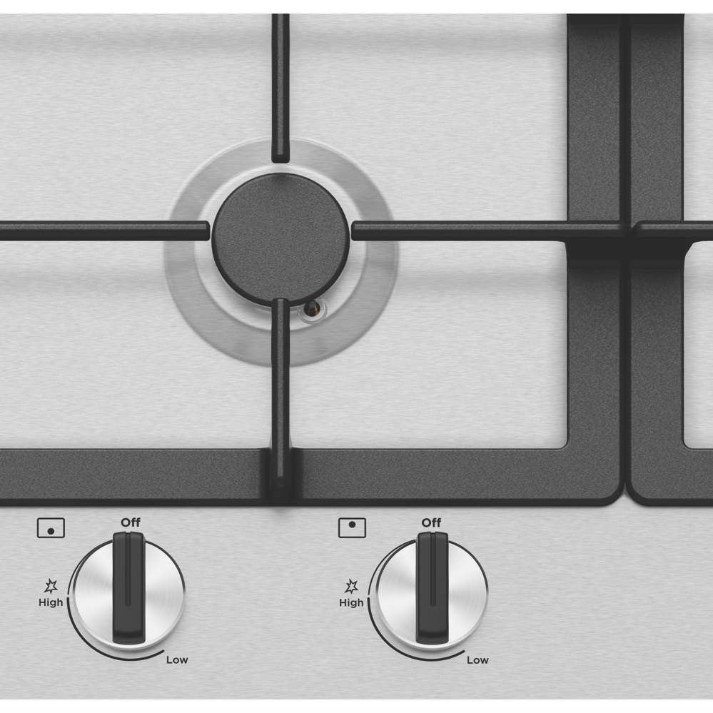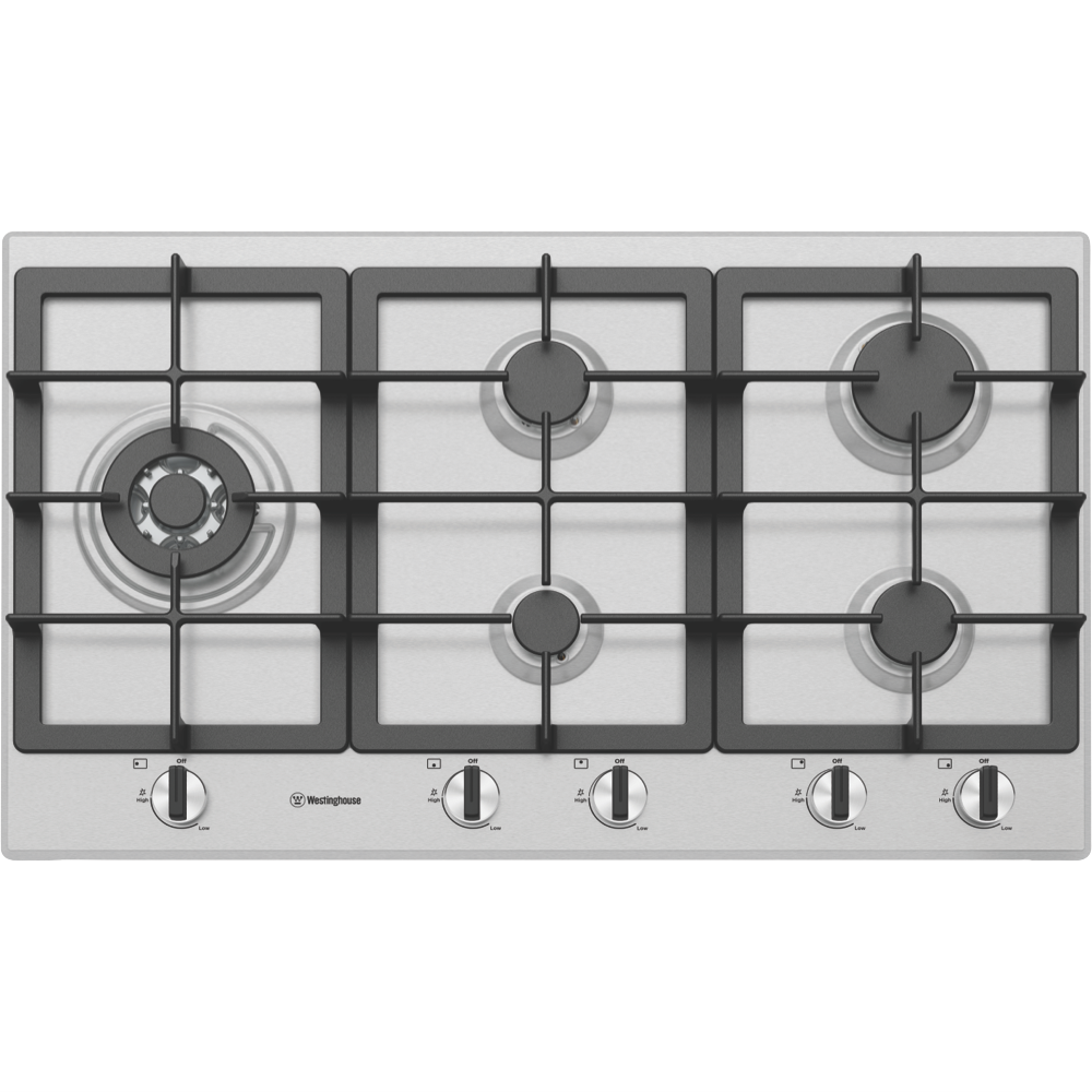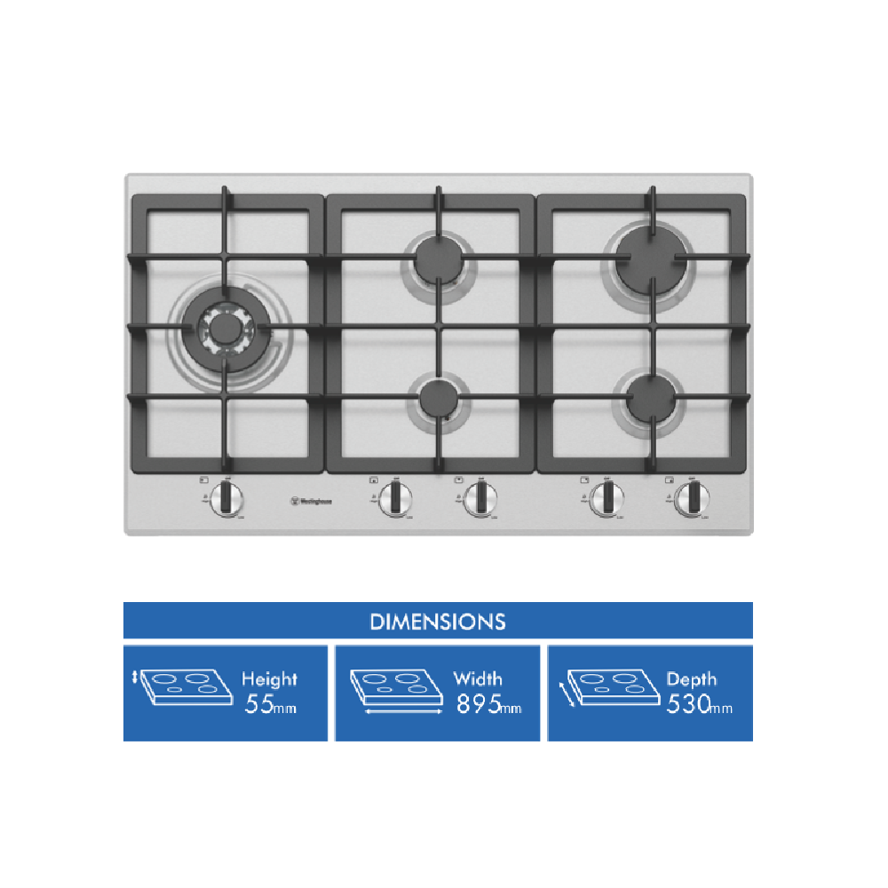 Minimalist design and excellent functionality come together for your everyday cooking convenience with the Westinghouse WHG954SC 90cm stainless steel gas cooktop. The five burners are operated by an easy start knob ignition and feature simple control panel graphics to help you stay in control of the cooking process. This cooktop comes with a high powered wok burner offering high heat so you can lock in flavour and create dishes the whole family will love. Should your pot boil over and extinguish the gas flame the Flame Failure Device will kick in automatically shutting down the gas supply for your safety. The flat cast iron trivets have been designed for better pot stability keeping your pots and pans in place during cooking. Cleaning is easy with three removable cast iron trivets and a flat stainless steel surface. The Westinghouse WHG954SC stainless steel gas cooktop offers functionality and style for your kitchen.