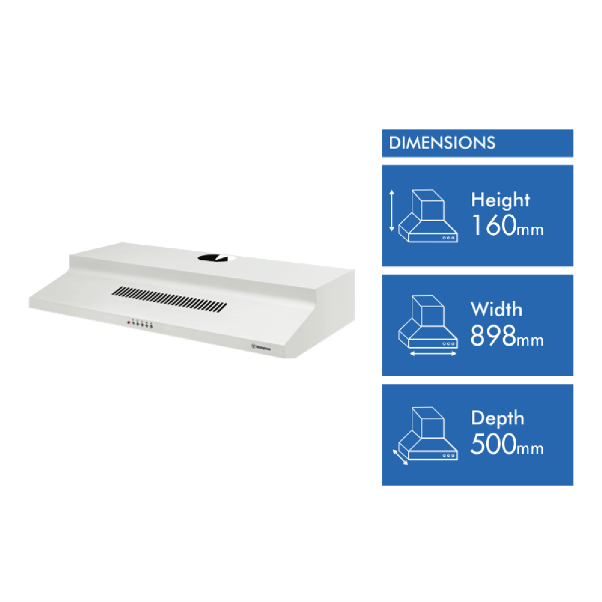 Westinghouse 90cm white universal rangehood 3 speed single centrifugal fan