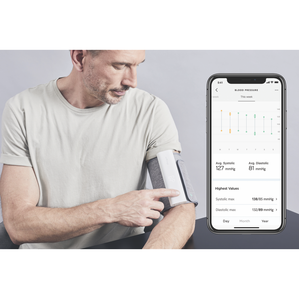 Keep your heart health in check with the Withings BPM Connect Wireless Blood Pressure Monitor. This grey fabric cuff monitor provides accurate blood pressure and pulse readings right from your smartphone. The large LED matrix screen clearly displays your results in under a minute for immediate feedback. With a medically validated measurement range and compatibility across iOS and Android devices this monitor makes it effortless to track your cardiovascular wellbeing. The cuff adjusts to fit arms 22-42cm while the Withings app lets you monitor trends over time and share results securely with your doctor. Weighing just 250g it's lightweight and portable for use at home or on the go. Monitor your health with the convenience and accuracy of the Withings Wireless Blood Pressure Monitor. The manufacturer's part number for this product is WPM-05-AU. Check out this clinically validated monitor today.