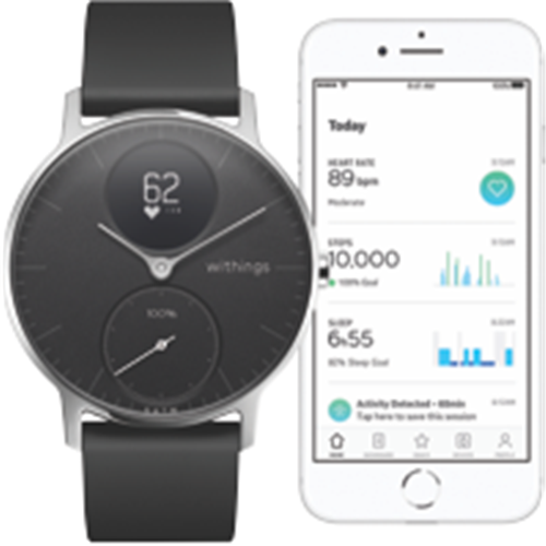 Steel HR is a hybrid smartwatch that s dedicated to your everyday life. Features heart rate monitoring a long-life battery of up to 25 days and is housed inside a durable sport watch making it perfect for transitioning from the gym to the office to a night out. Walk run swim and sleep are tracked automatically. And for an accurate tracking of all your other workouts simply select your activity directly on your watch with a long press of the button. During workouts this sleek device tracks continuous heart rate distance elevation and pace via connected GPS. Steel HR also tracks average heart rate during the day as well as overnight heart rate while sleeping. All data syncs automatically to the free Health Mate app where you can set goals view trends and find expert coaching every step of the way. Steel HR features a sub-dial to see daily steps at a glance while also offering a dynamic digital screen that displays a wealth of data including heart rate distance and calories burned plus a full range of smartphone notifications with previews.