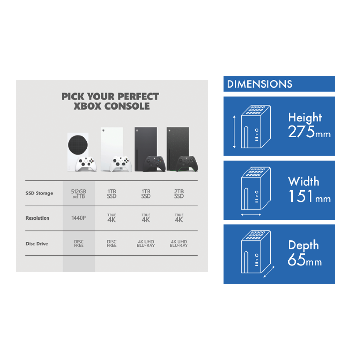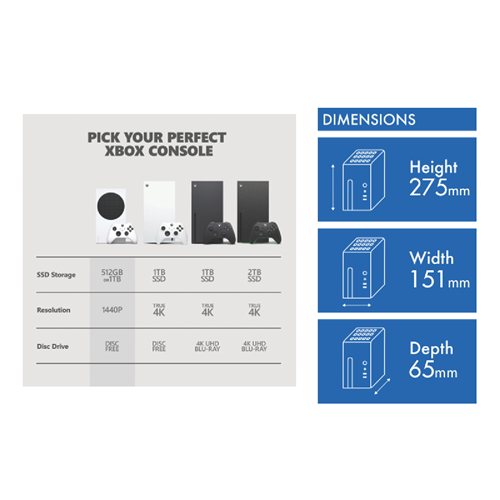 Ready to level up your gaming experience? The Xbox Series S 1TB in sleek Robot White packs a powerful punch in a compact design. With a generous 1TB of storage you'll have plenty of space for your favorite games across Xbox One Xbox 360 and even Original Xbox titles. The speedy Wi-Fi and HDMI 2.1 connectivity ensure smooth lag-free gaming sessions. Plus the enhanced Xbox Wireless Controller features textured triggers a hybrid D-pad and customizable button mapping for precision control. Measuring just 275mm x 151mm x 65mm and weighing under 2kg this mighty little console will fit right into your setup. Experience immersive audio with Dolby Digital 5.1 and Dolby TrueHD with Atmos support. The Xbox Series S 1TB (EP2-00660) comes with the console controller and a 1-year manufacturer's warranty. Are you ready to jump into the next generation of gaming?