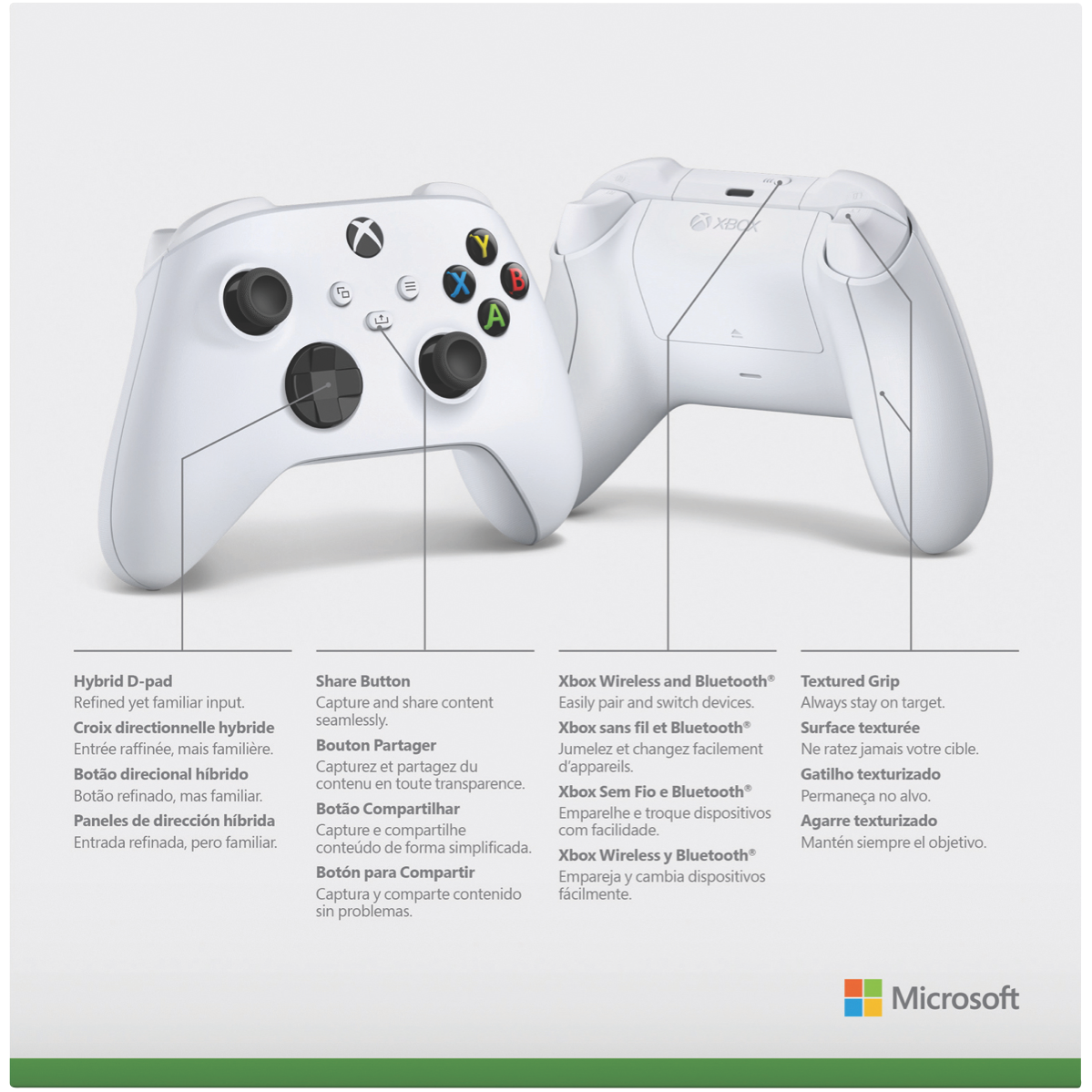 Take gaming to the next level with the Xbox Wireless Controller in stunning Robot White. This advanced controller is designed for seamless gaming on Xbox Series X/S Xbox One and Windows PCs. Its Bluetooth connectivity provides wireless freedom while the 3.5mm audio jack lets you plug in any compatible headset. With sculpted contours and textured grips you'll enjoy enhanced comfort for marathon gaming sessions. The responsive buttons and D-pad deliver precision play so you can react quickly and execute game-winning moves. Bring your A-game and dominate the competition with this high-performance Xbox controller. Compatible across Xbox and PC it offers versatile next-gen wireless gaming. The manufacturer's part number for this product is QAS-00006. Game on with the Xbox Wireless Controller today!