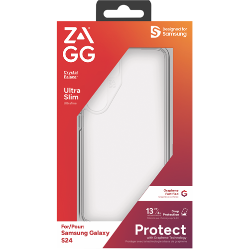 Make an unforgettable impression with the ZAGG Crystal Palace Case for Galaxy S24. This crystal clear phone case lets your device's design shine through while providing durable antimicrobial protection. The slim profile hugs your phone without adding bulk and the scratch-resistant back keeps your Galaxy S24 looking as flawless as the day you unboxed it. Thanks to the antimicrobial treatment this case inhibits up to 99% of surface bacteria. With military-grade drop protection and a 2 year manufacturer's warranty you can use your phone with confidence. The clear Galaxy S24 cover accentuates your phone s original color and styling. Part number 11901315984.